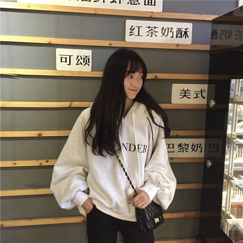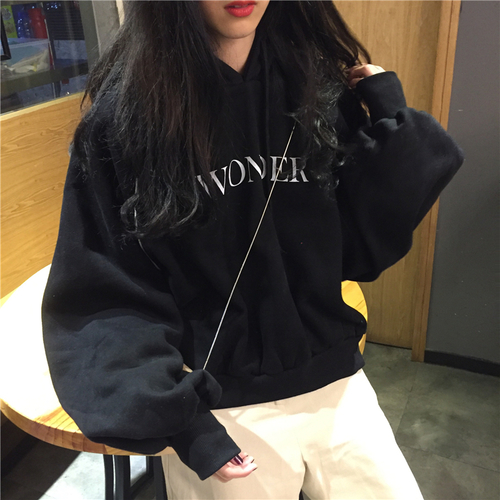 / 韓版小清新學生百搭復古chic上衣女加絨加厚寬松字母印花連帽衛衣