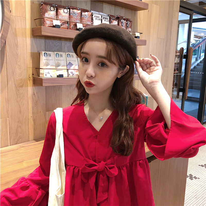 / 遮肚子雪紡娃娃衫秋裝女2018新款韓版顯瘦V領荷葉袖短款黑色上衣