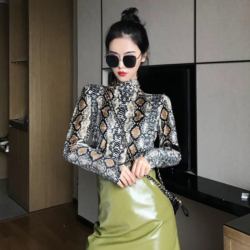 / 時尚豹紋高領T恤秋裝女2018新款韓版修身顯瘦打底衫氣質長袖上衣