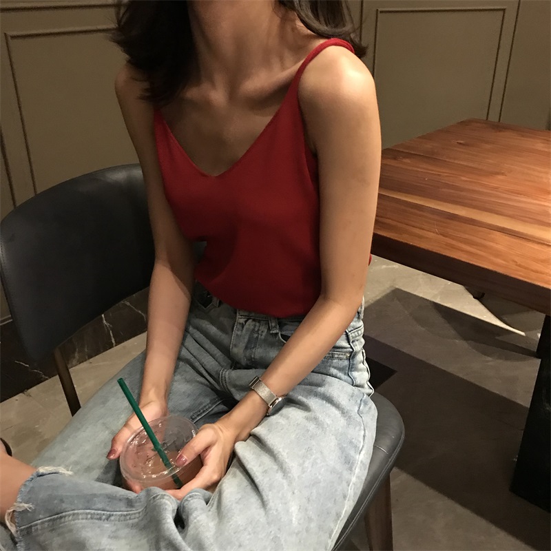 / 夏季2018新款港味修身顯瘦簡約基礎打底無袖針織背心吊帶上衣女潮