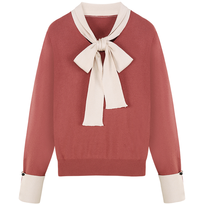 MG小象chic針織衫女秋冬2018新款蝴蝶結長袖上衣學生套頭復古毛衣