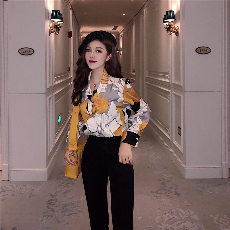 chic早秋上衣女2018新款韓版復古港風寬松長袖顯瘦時尚氣質花襯衫