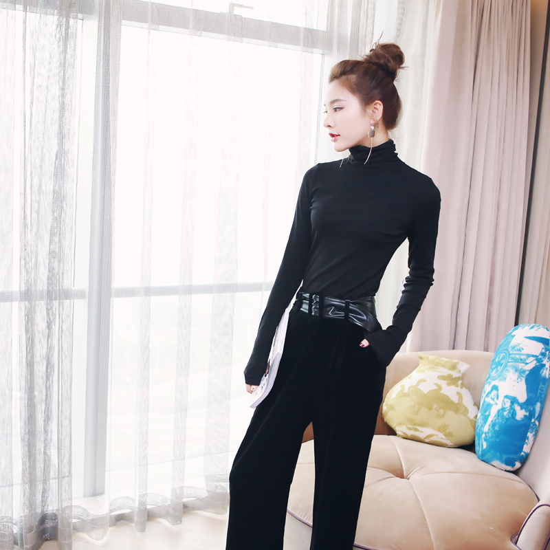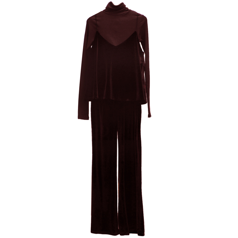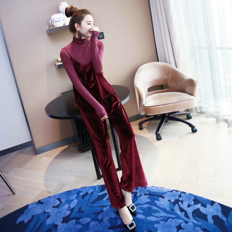 復古洋氣網紅絲絨三件套裝長袖上衣吊帶長褲闊腿褲秋裝女2018新款