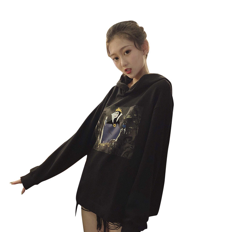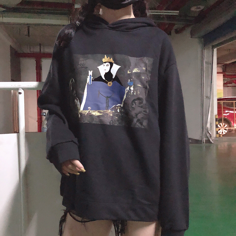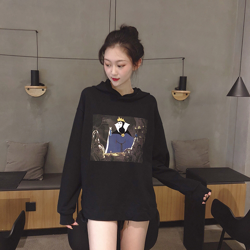 秋裝女2018新款復古時尚白雪公主印花oversize連帽衛衣女寬松上衣