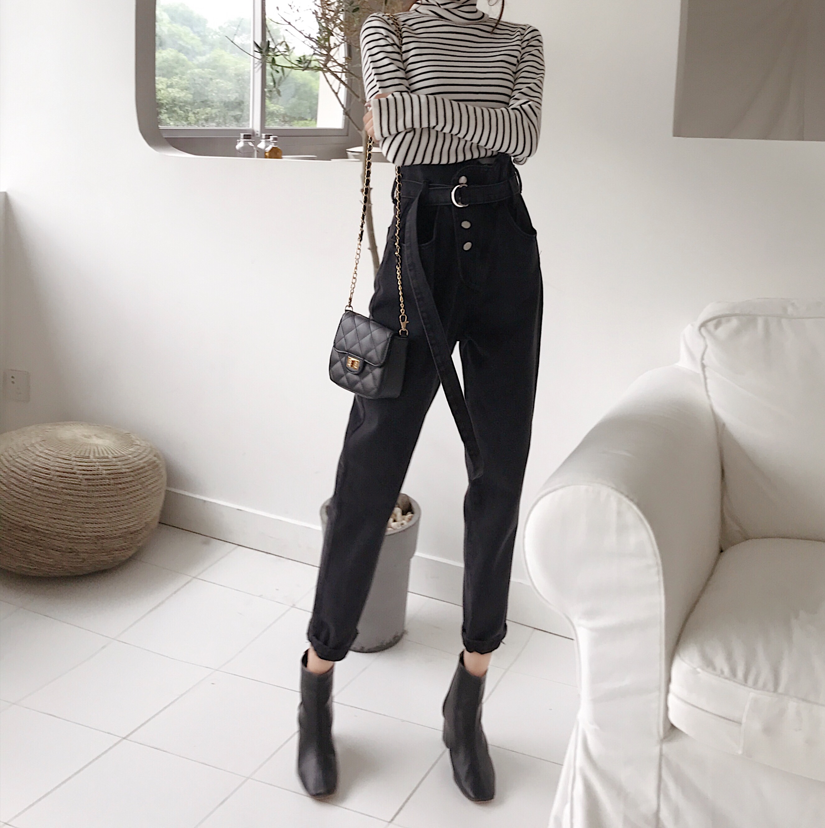 韓國時尚復古高腰百搭牛仔褲女秋冬2018新款老爹褲哈倫褲直筒長褲