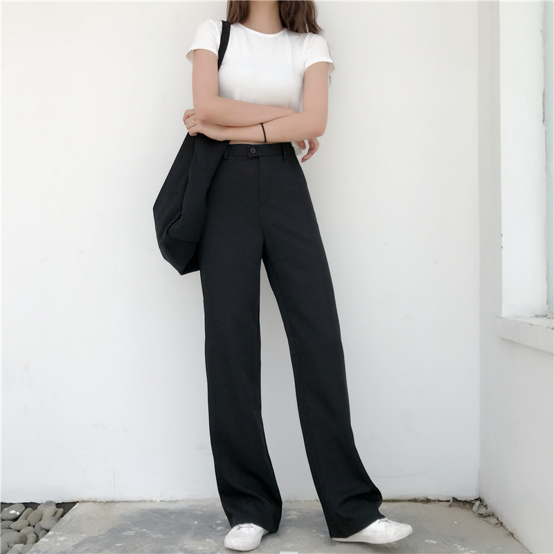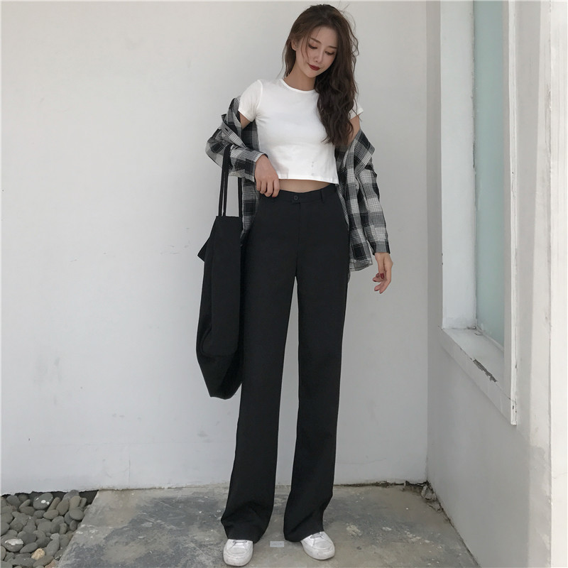 秋裝2018新款女復古氣質顯瘦高腰大長腿西裝褲女拖地長褲休閑褲潮