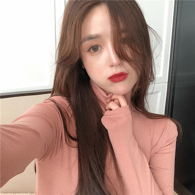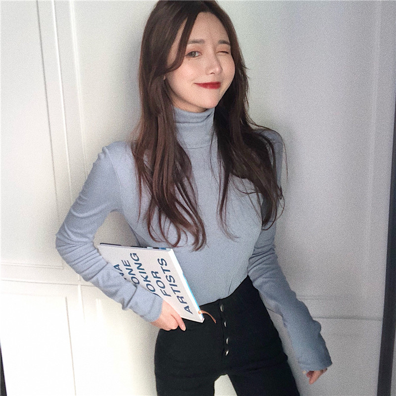 秋冬2018新款韓版百搭高領長袖體恤上衣修身顯瘦純色打底衫女學生