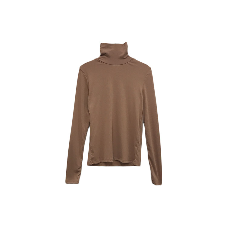 初秋新款女上衣韓版時尚chic基礎款百搭顯瘦高領純色打底衫t恤女