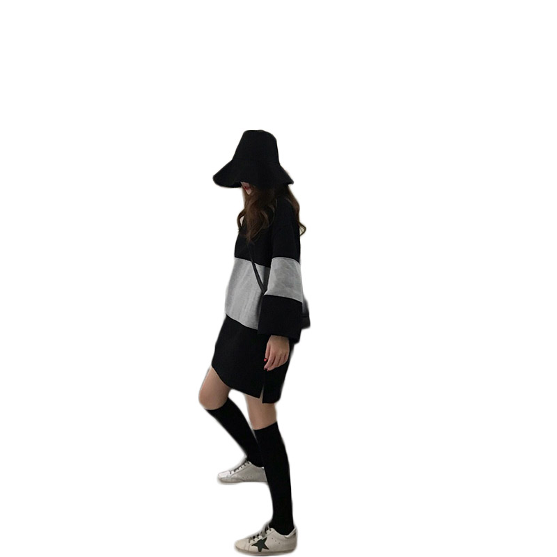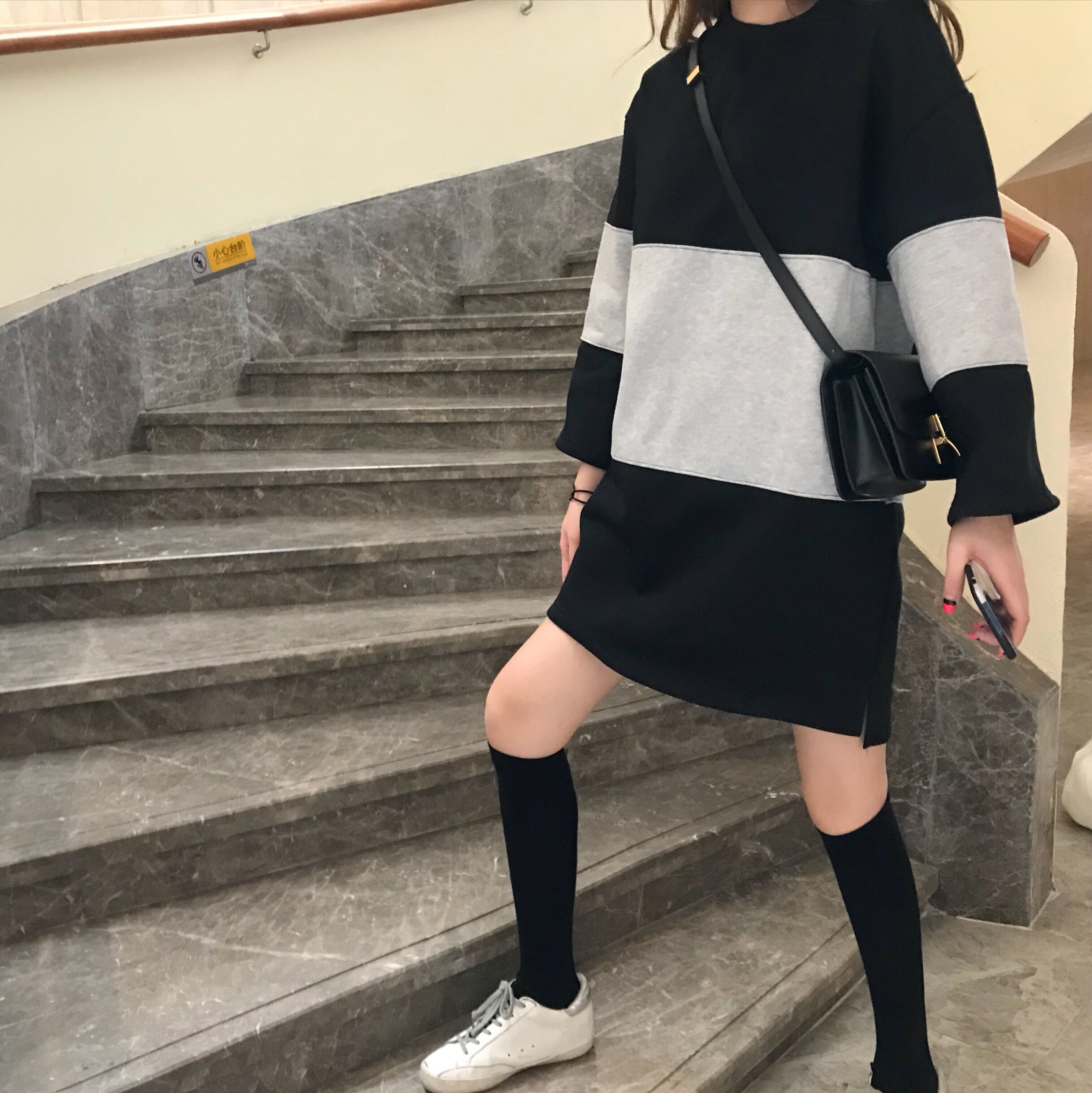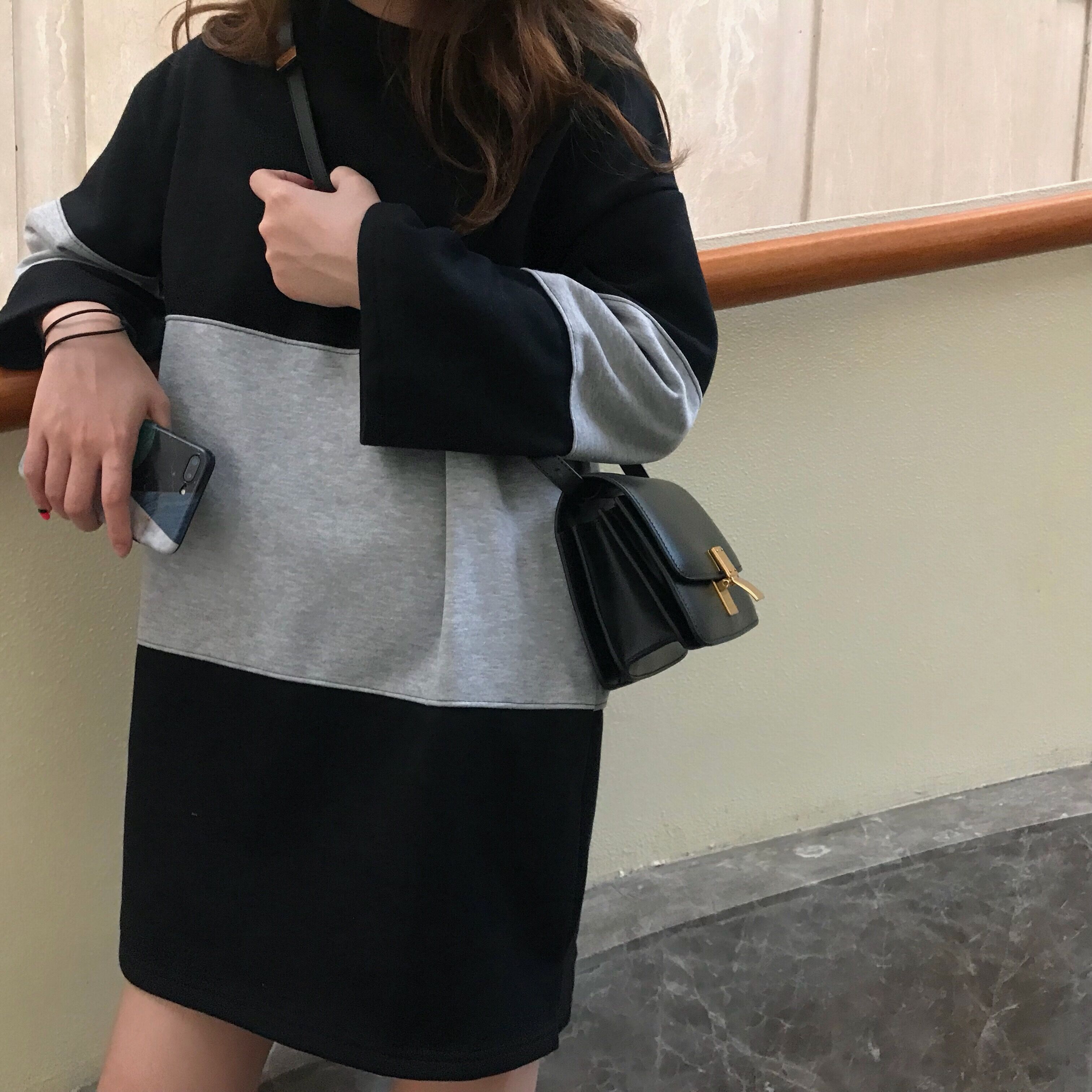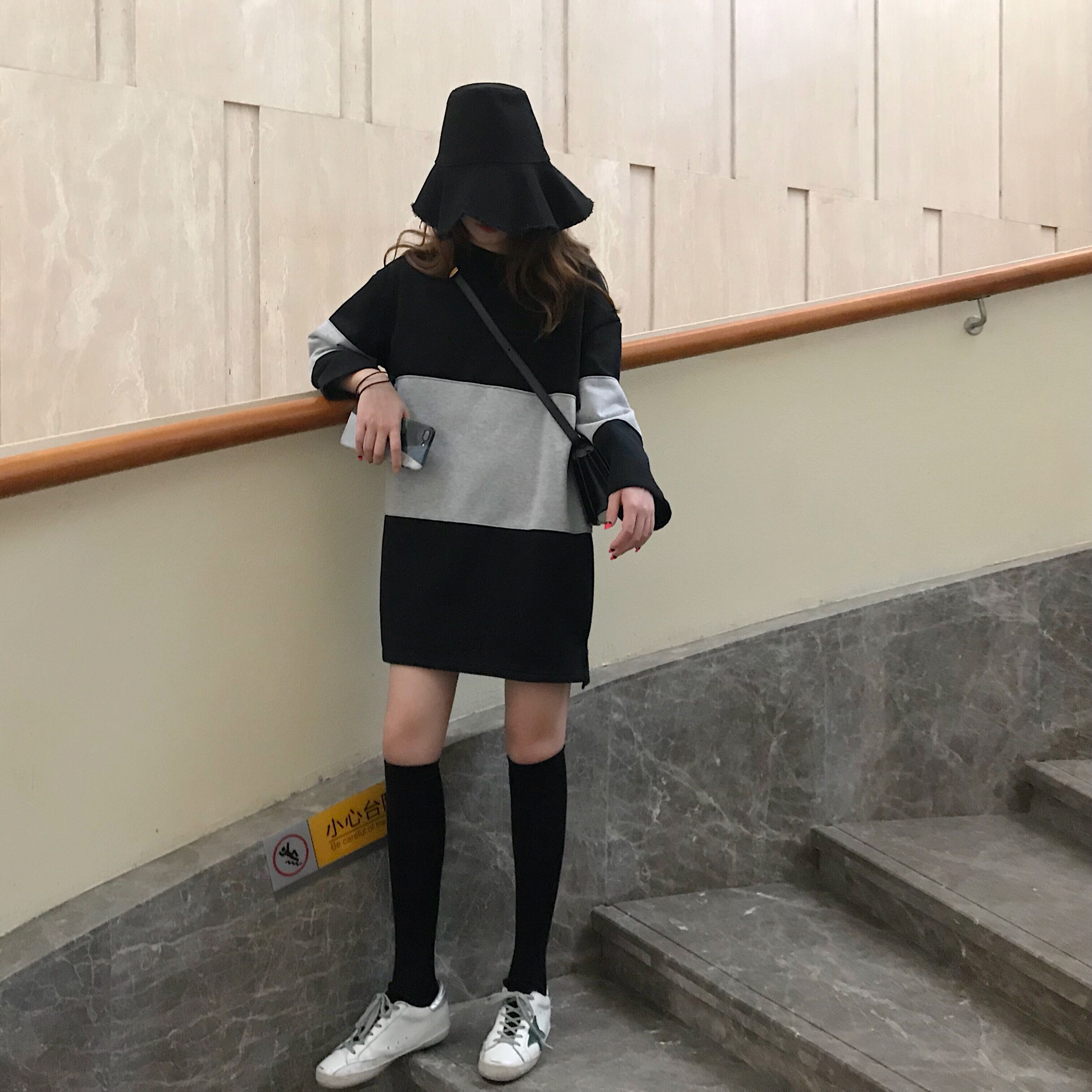 / 早秋衛衣2018新款女長袖韓版chic寬松顯瘦中長款拼色連衣裙衛衣潮