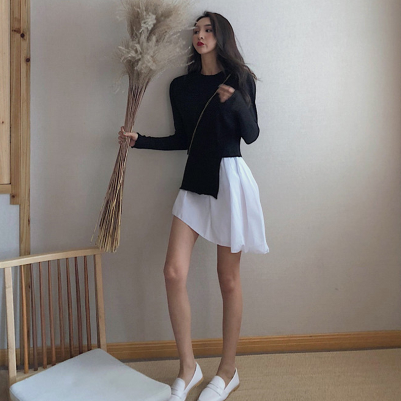/ 秋冬女裝2018新款時尚撞色拼接氣質A字egg連衣裙復古法式茶歇裙子