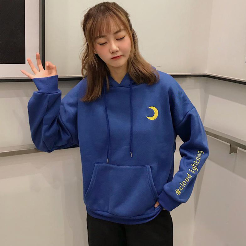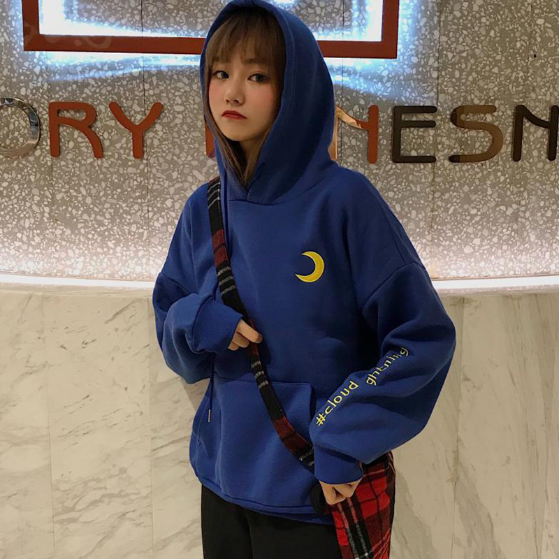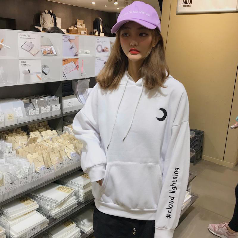 / 時尚刺繡加絨連帽衛衣2018新款女秋冬裝港風學生外套寬松長袖上衣