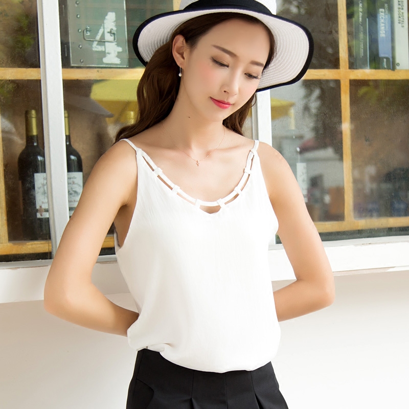 / 秋裝新款外穿雪紡背心女吊帶大碼寬松修身顯瘦打底衫女潮