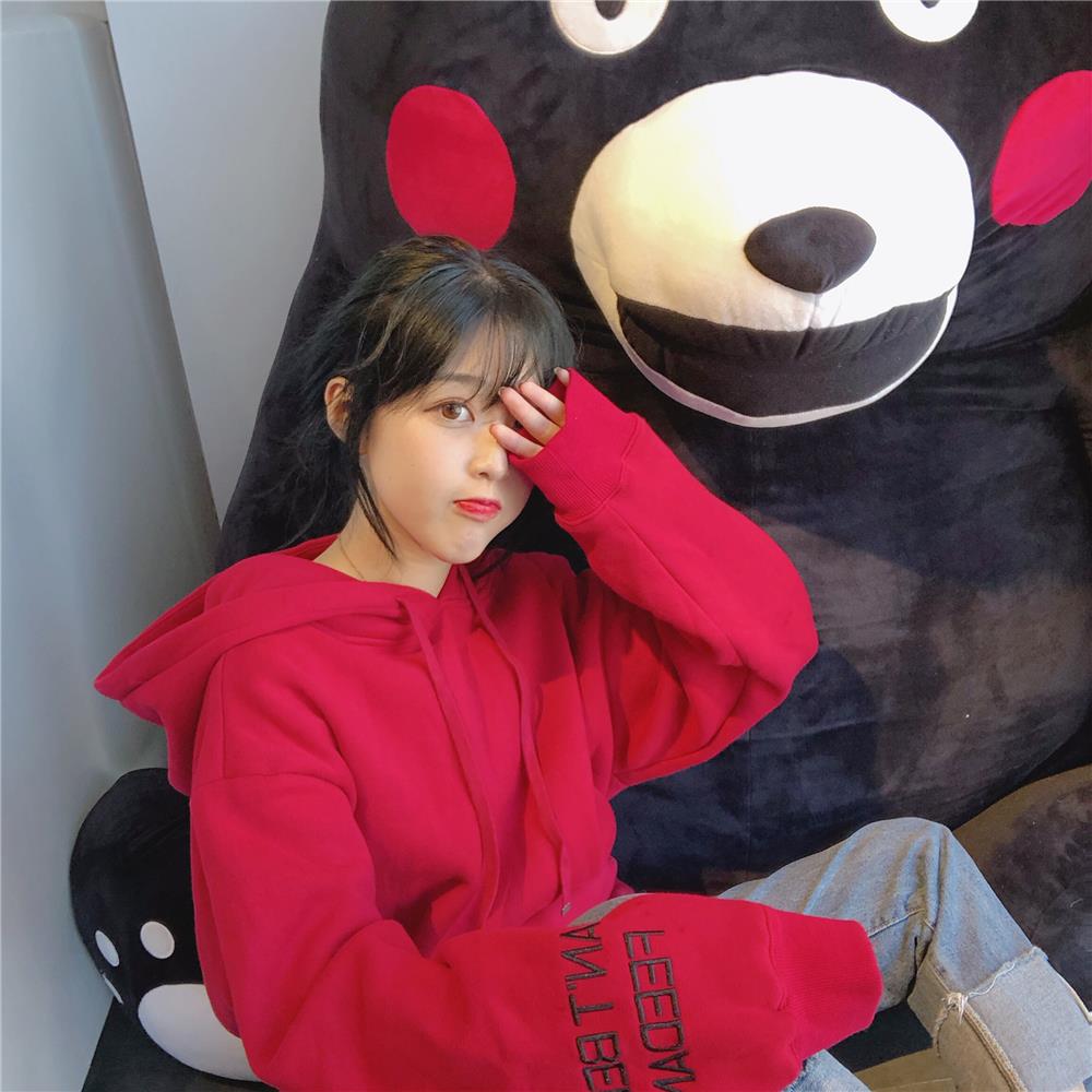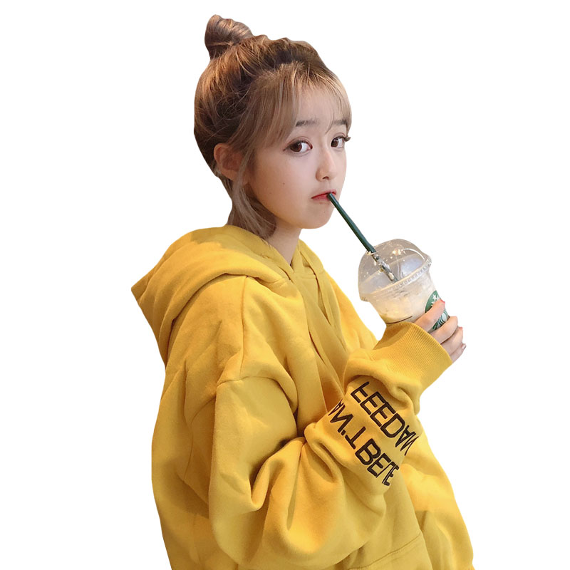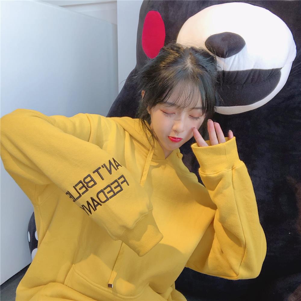 / 2018新款秋冬韓版字母刺繡加絨中長款BF風寬松連帽超火衛衣外套女