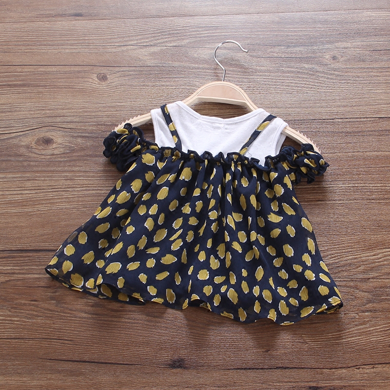 女童裝夏季假兩件雪紡上衣寶寶時尚背心T恤嬰幼兒純棉打底衫