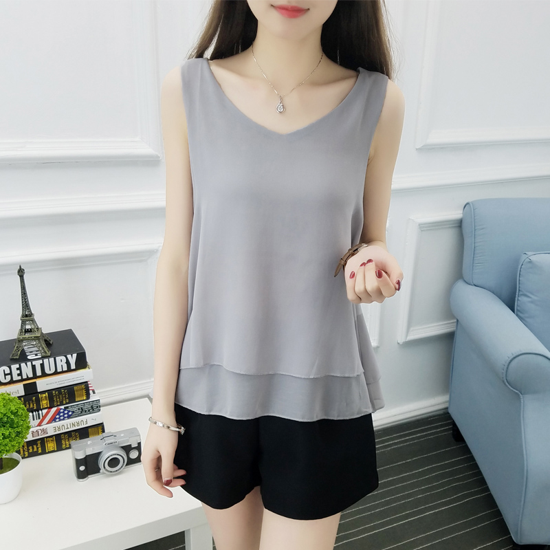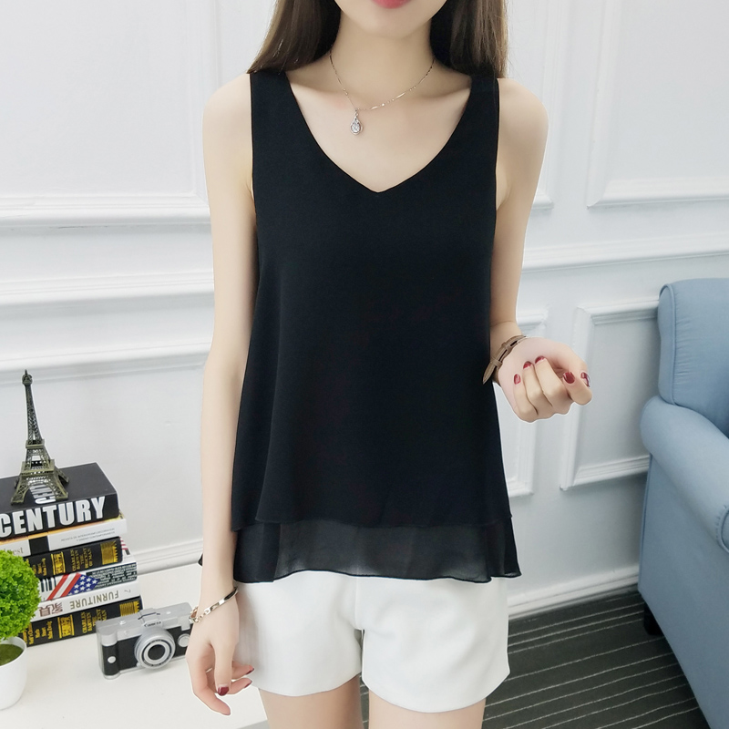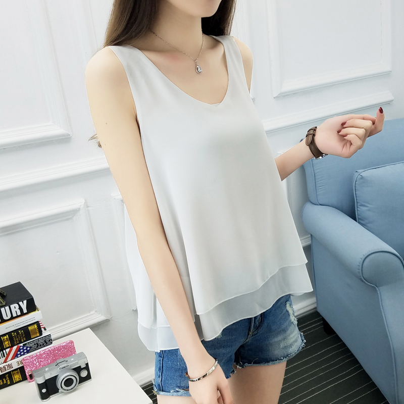 / 吊帶背心女夏季新款短款雪紡無袖t恤寬松百搭外穿上衣吊帶衫
