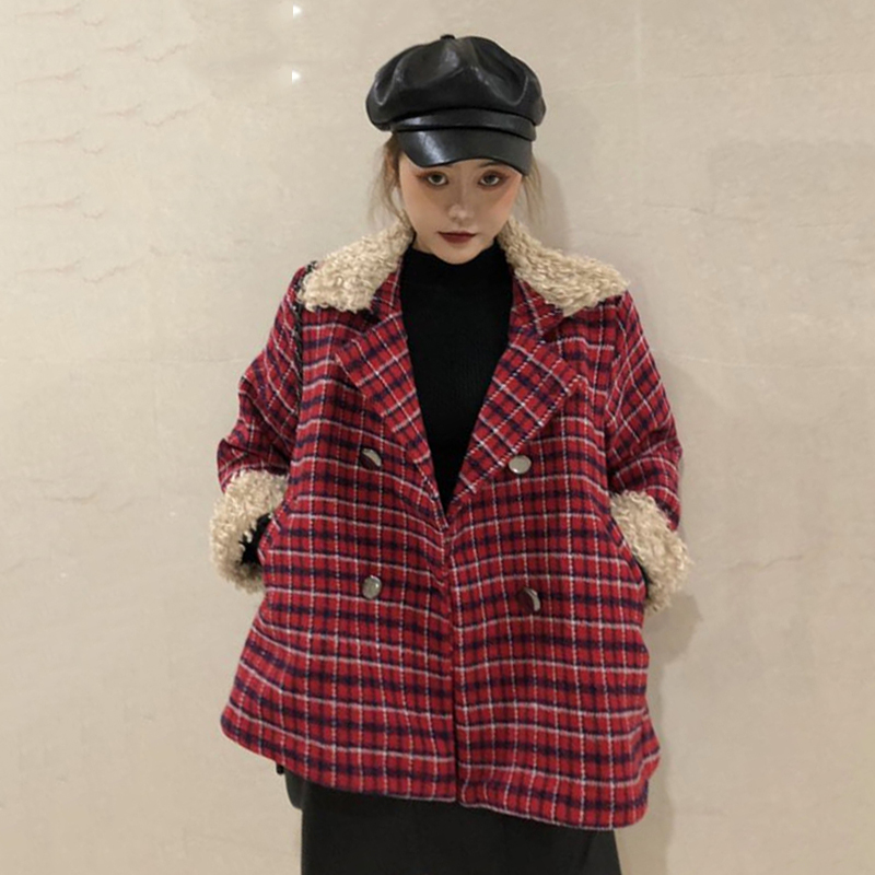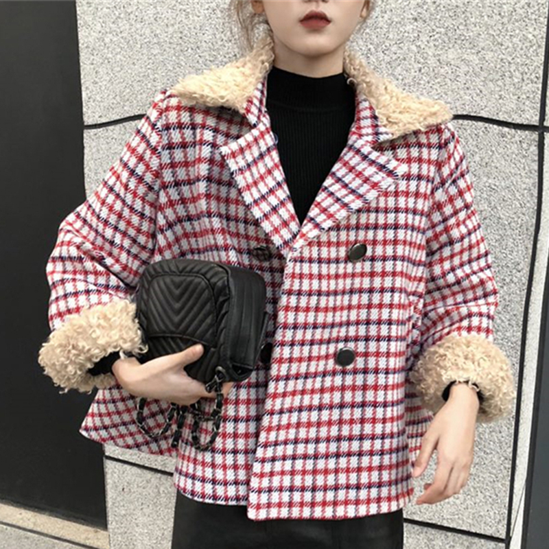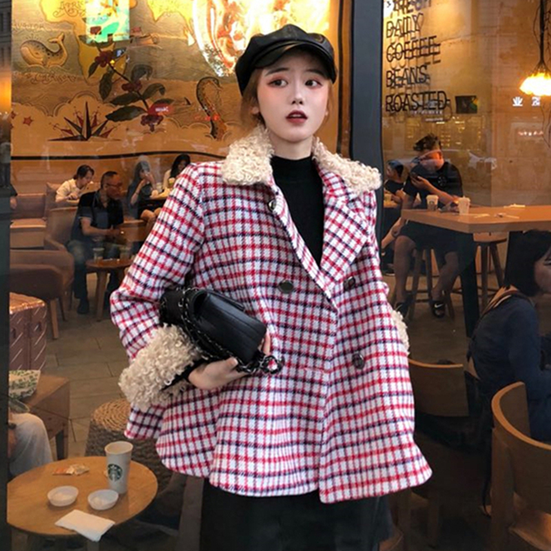 洋氣兩件套女秋裝2018新款毛呢格子大衣寬松外套修身長袖打底上衣