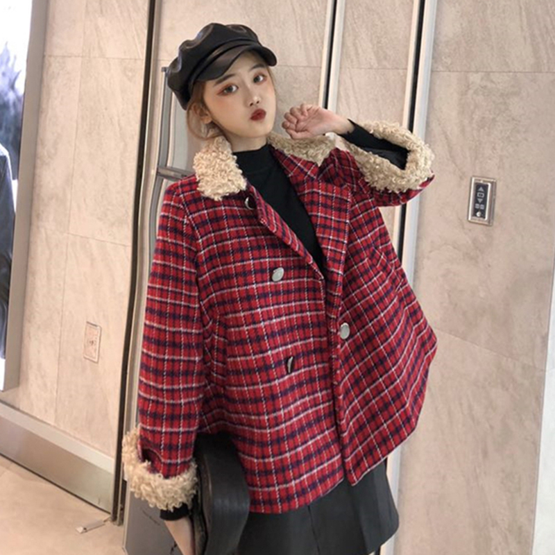 / 洋氣兩件套女秋裝2018新款毛呢格子大衣寬松外套修身長袖打底上衣