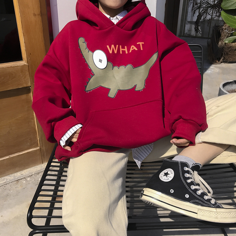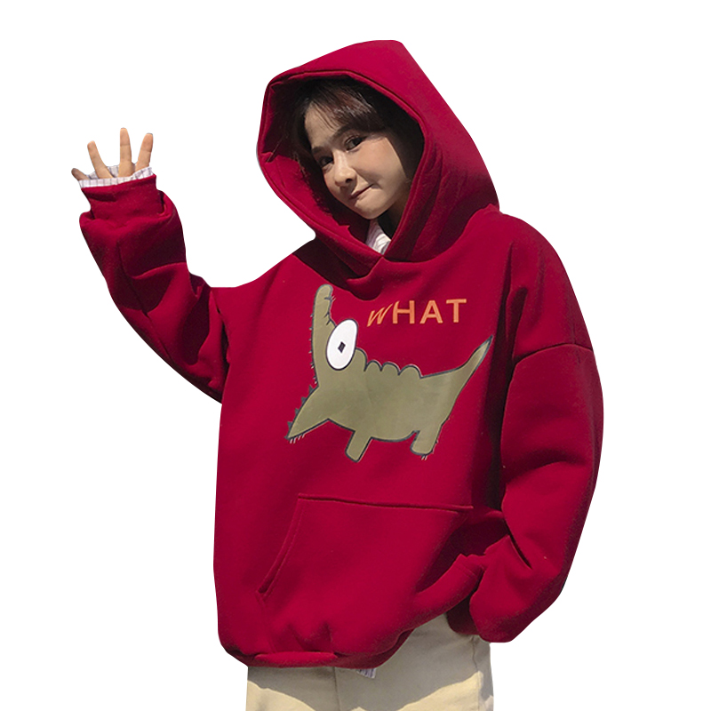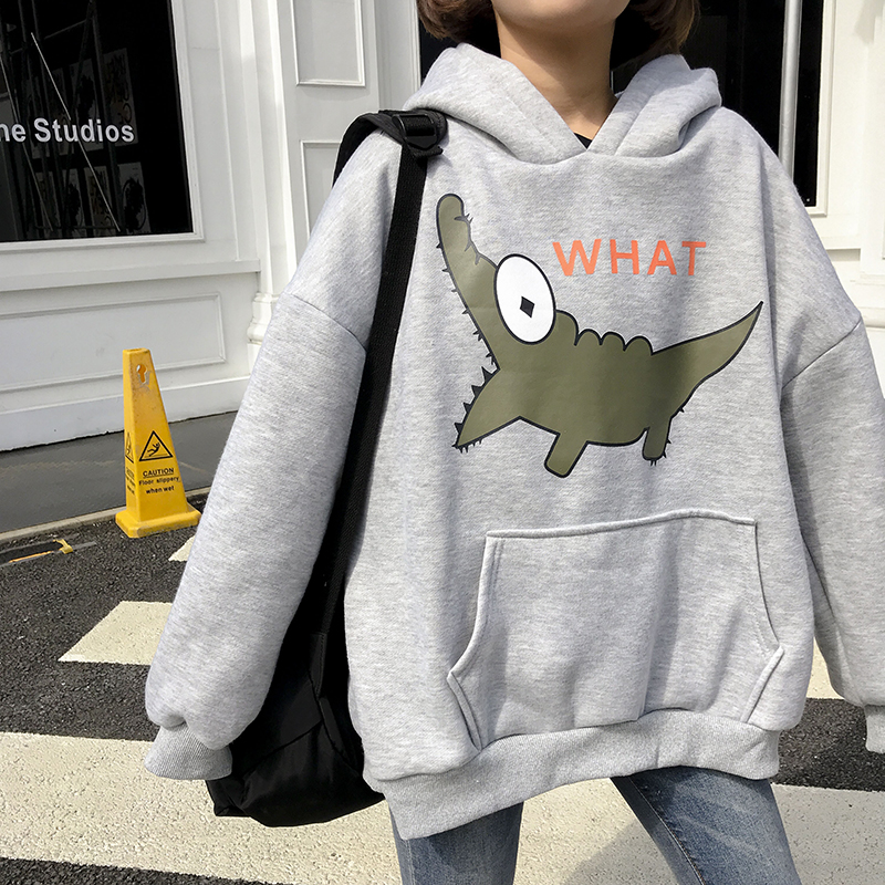 2018新款秋冬韓版原宿風卡通連帽加絨加厚套頭超火衛衣上衣外套女