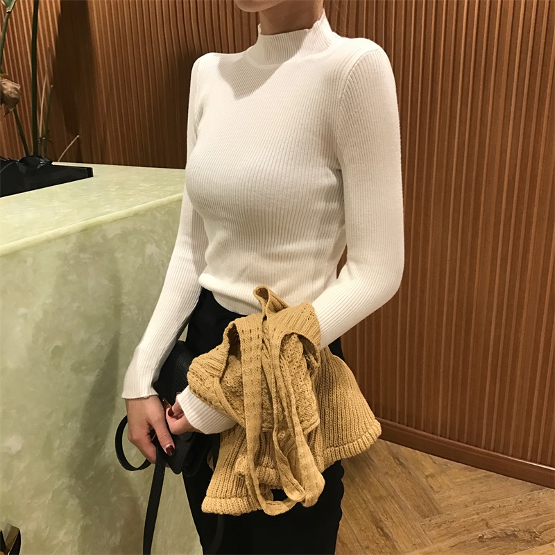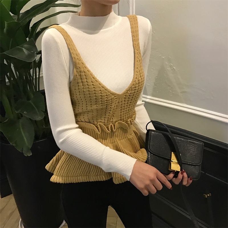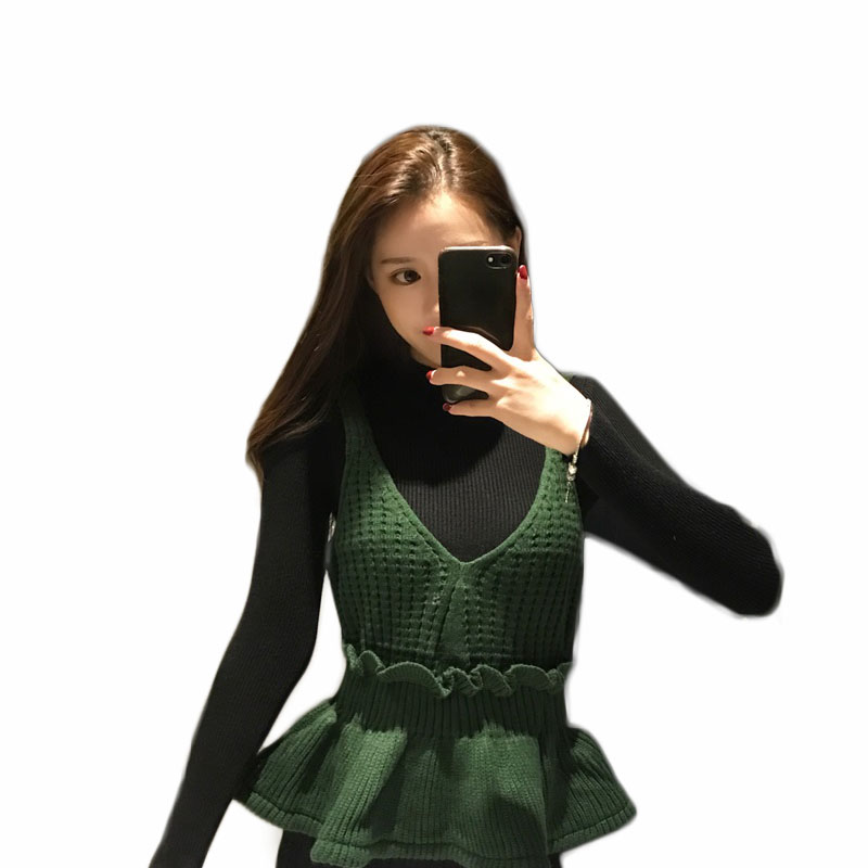韓版氣質半高領修身毛衣女秋冬2018新款+針織吊帶背心女時尚套裝