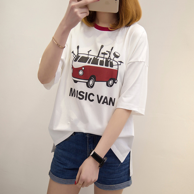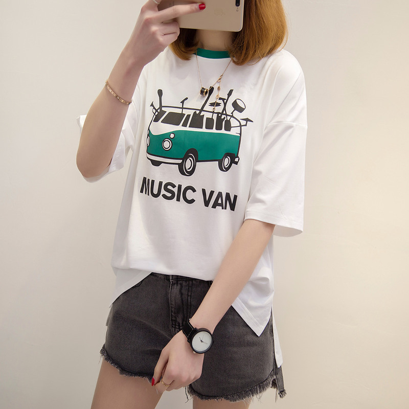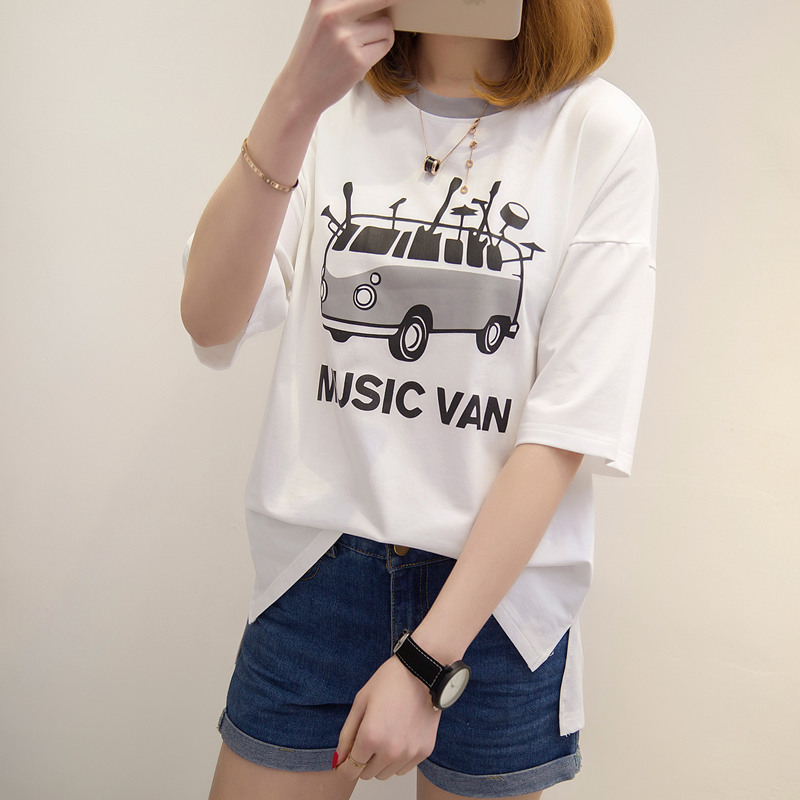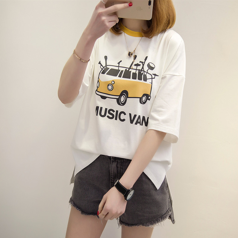 / 短袖上衣女夏新款白色t恤女半袖韓版卡通百搭簡約學生體恤衫