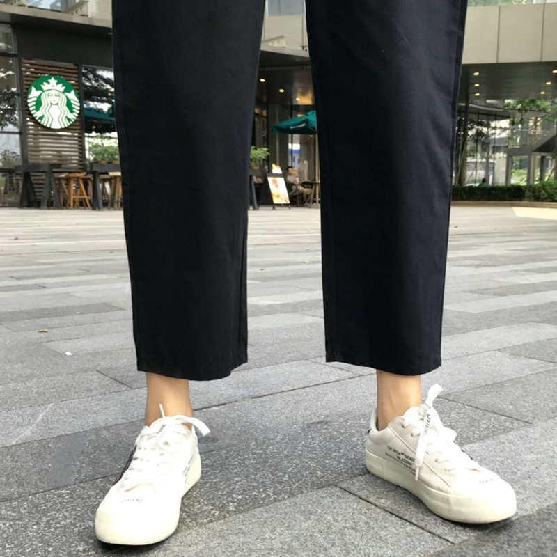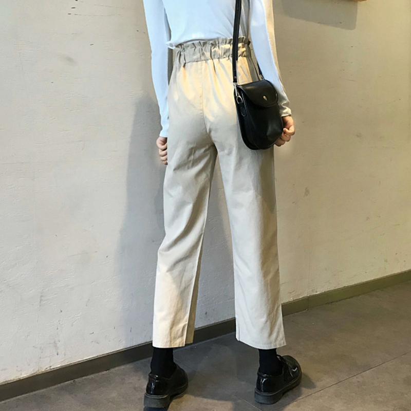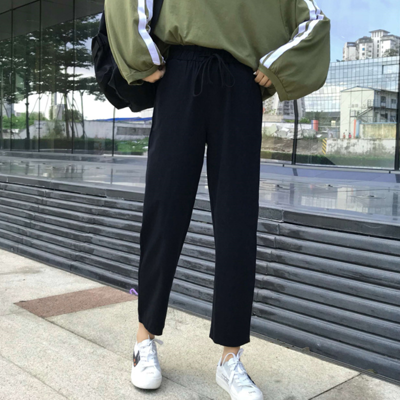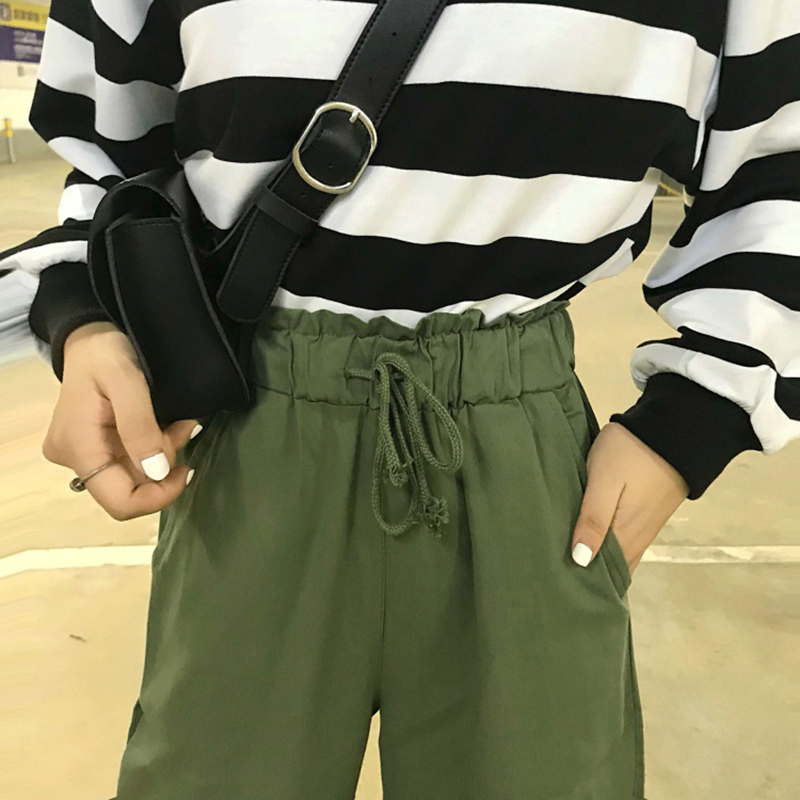 2018秋裝新款松緊腰休閑褲寬松復古工裝直筒褲九分哈倫褲子女學生