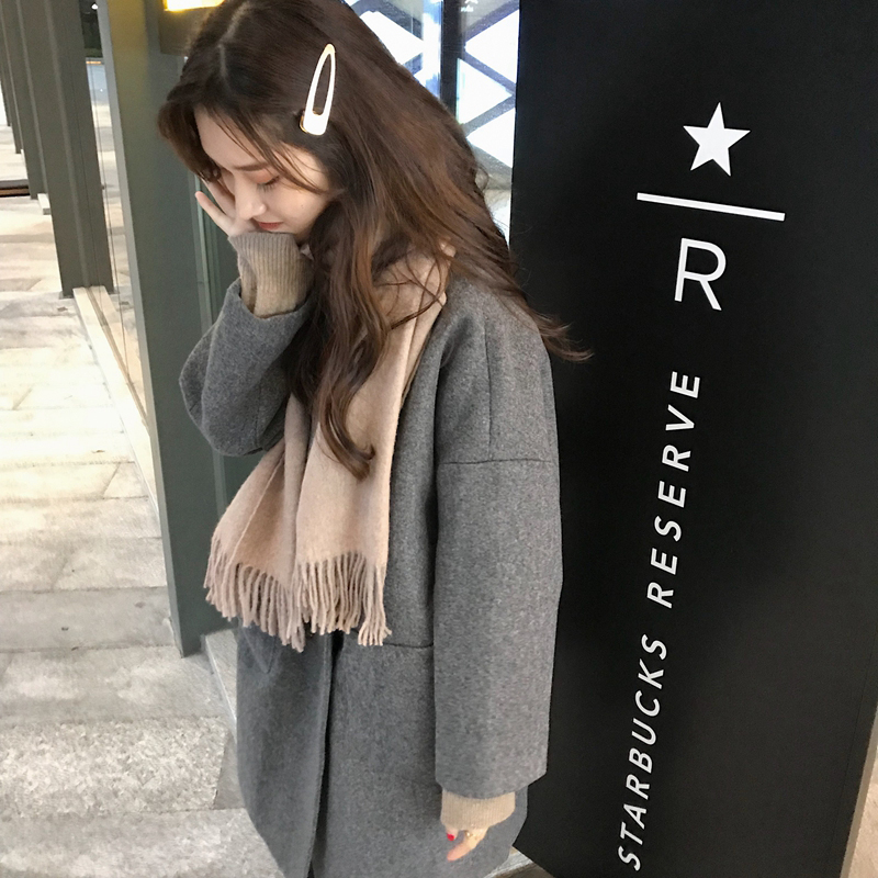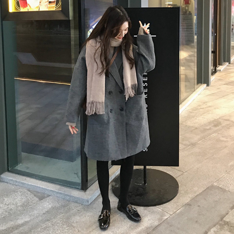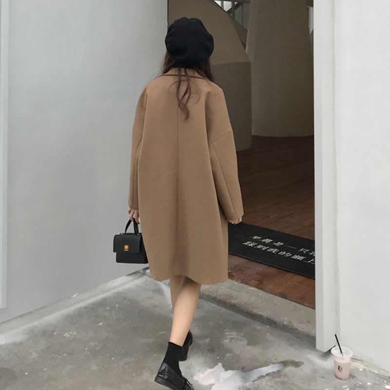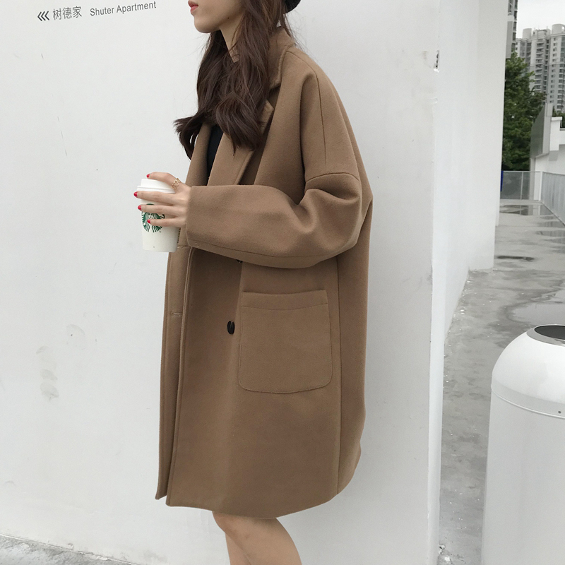 中長款流行呢子大衣女秋冬2018新款韓版寬松翻領雙扣長袖毛呢外套