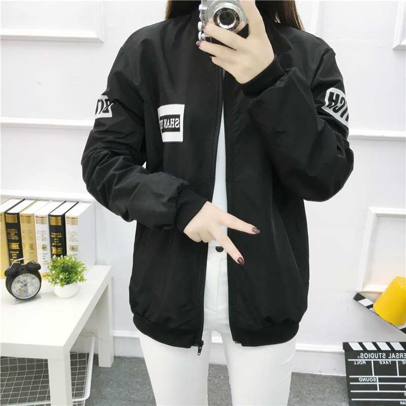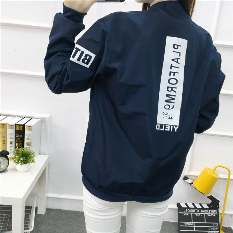 棒球服女春秋短款2017新款韓版原宿風寬松bf拼色字母印花學生外套