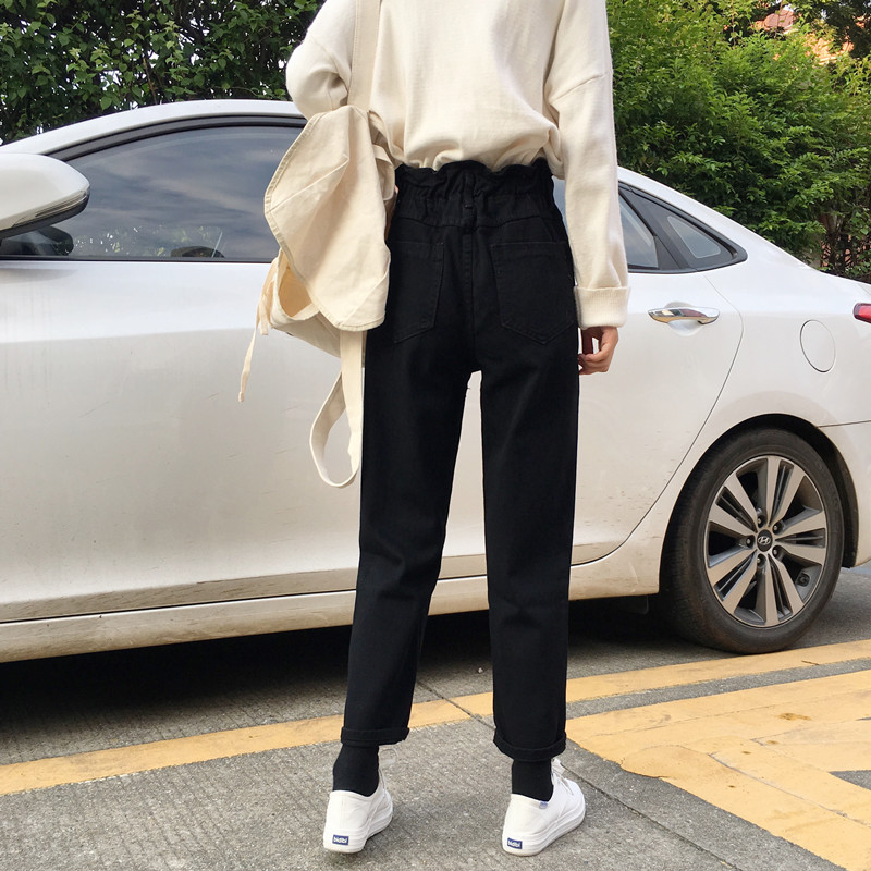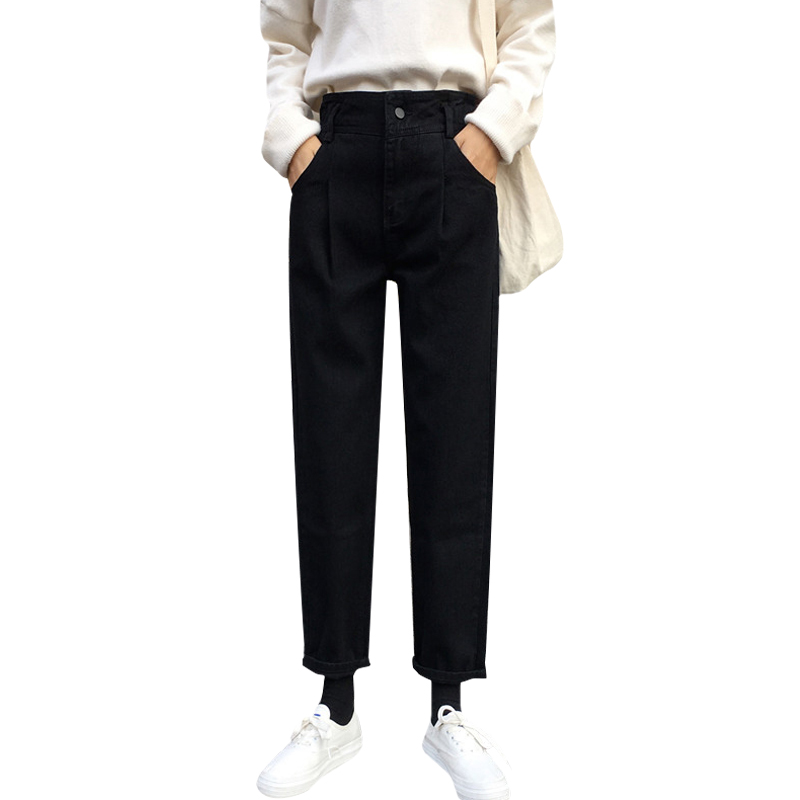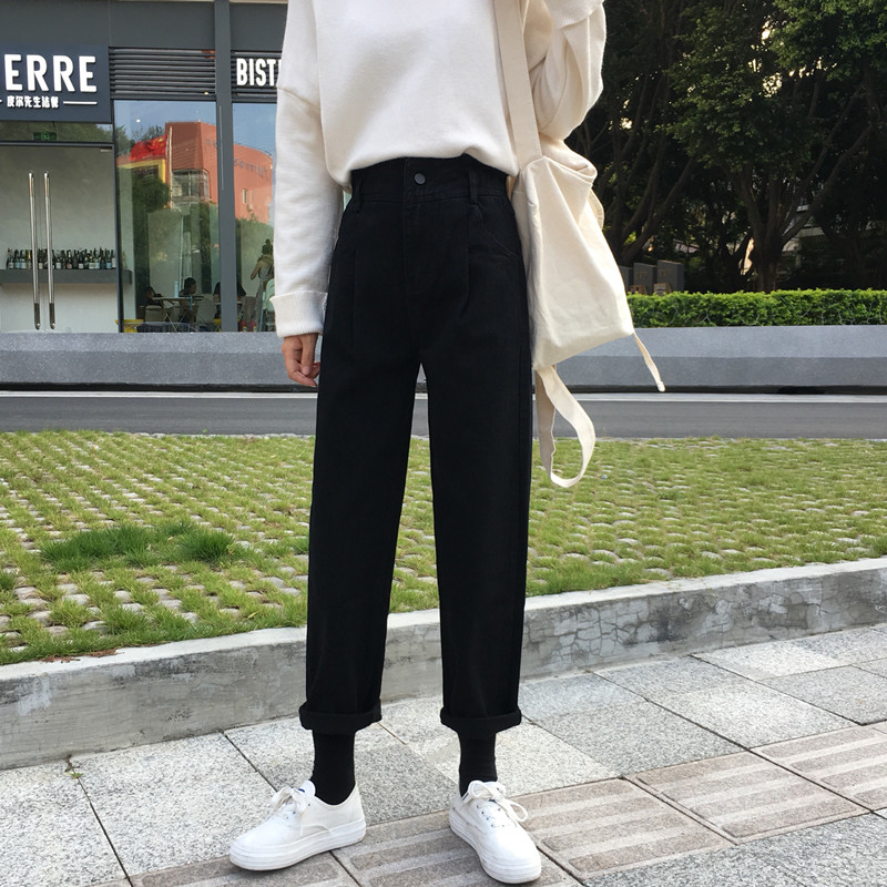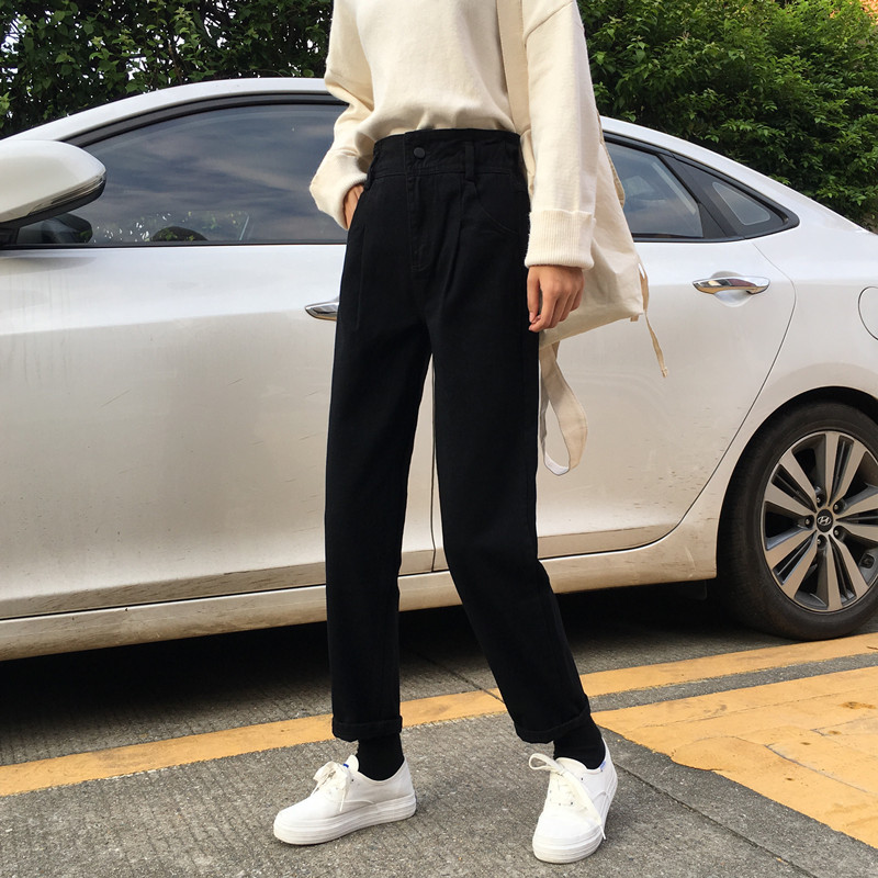 / 秋冬韓版寬松簡約黑色牛仔褲高腰顯瘦直筒褲闊腿褲長褲學生褲子女