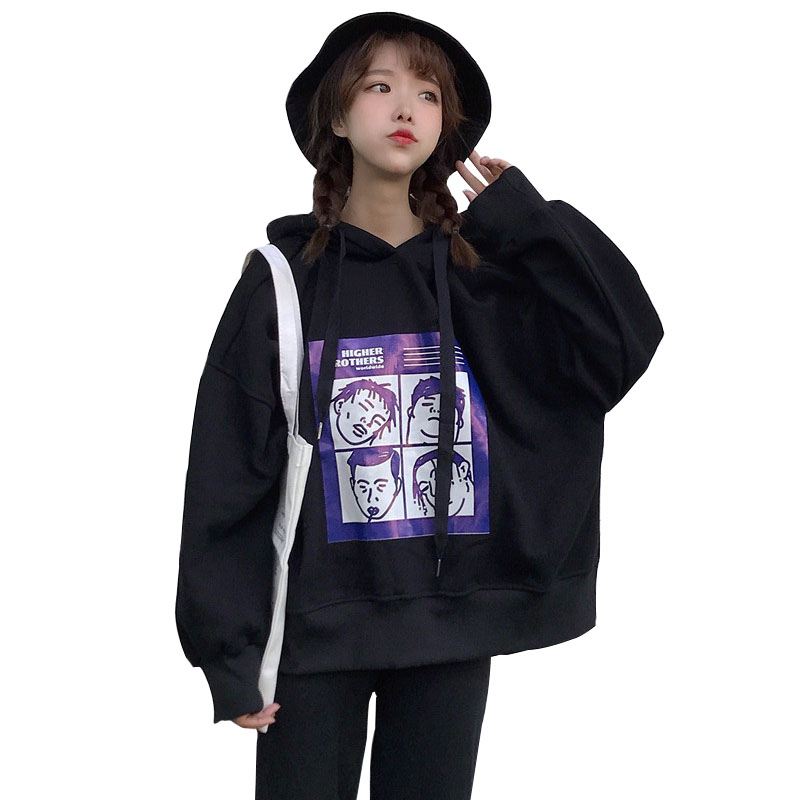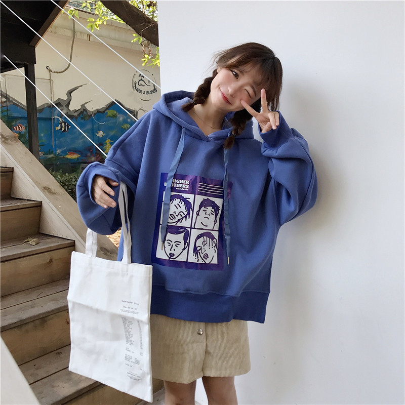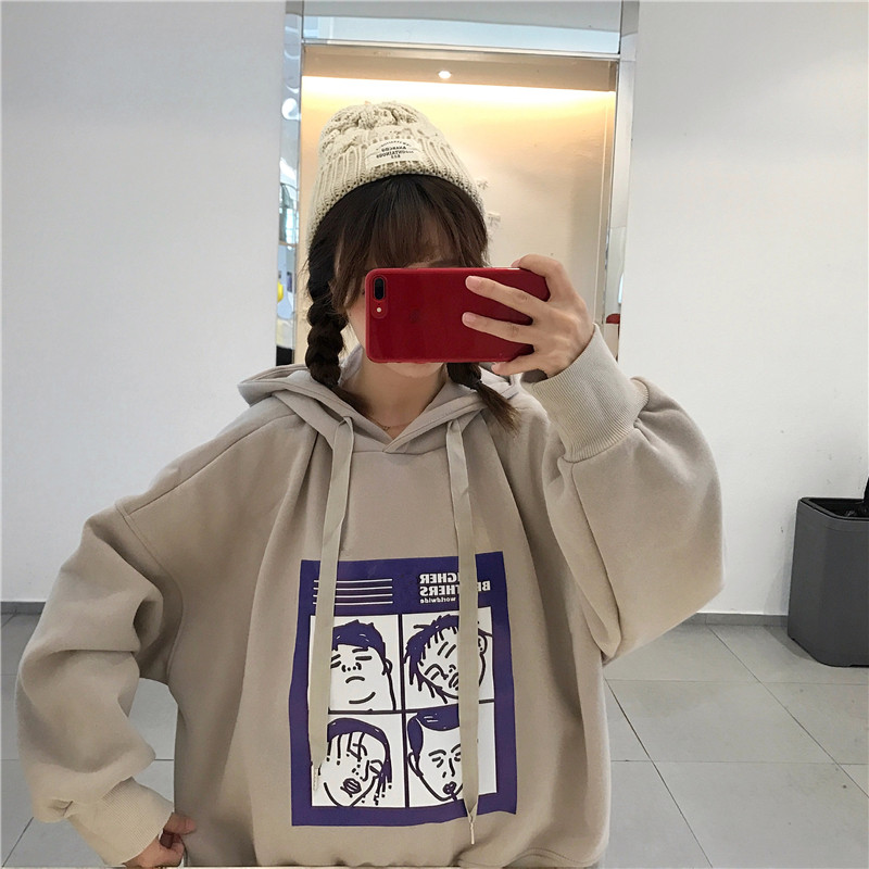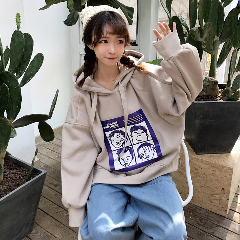 / 秋冬女裝韓版原宿風個性漫畫連帽抓絨寬松長袖套頭衛衣上衣外套潮