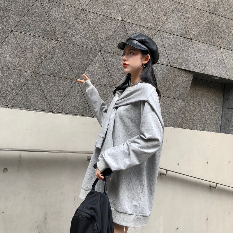 / 2018秋季新款韓版女百搭假兩件設計寬松顯瘦小清新學生上衣衛衣潮