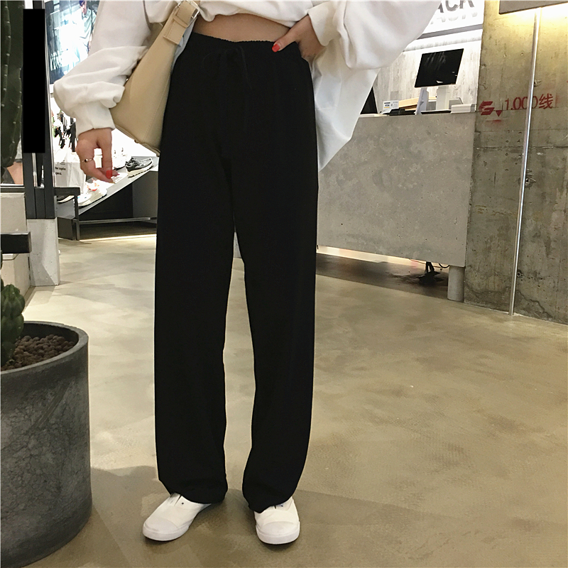 秋季女裝韓版寬松百搭抽繩休閑褲高腰顯瘦闊腿褲運動褲直筒褲長褲