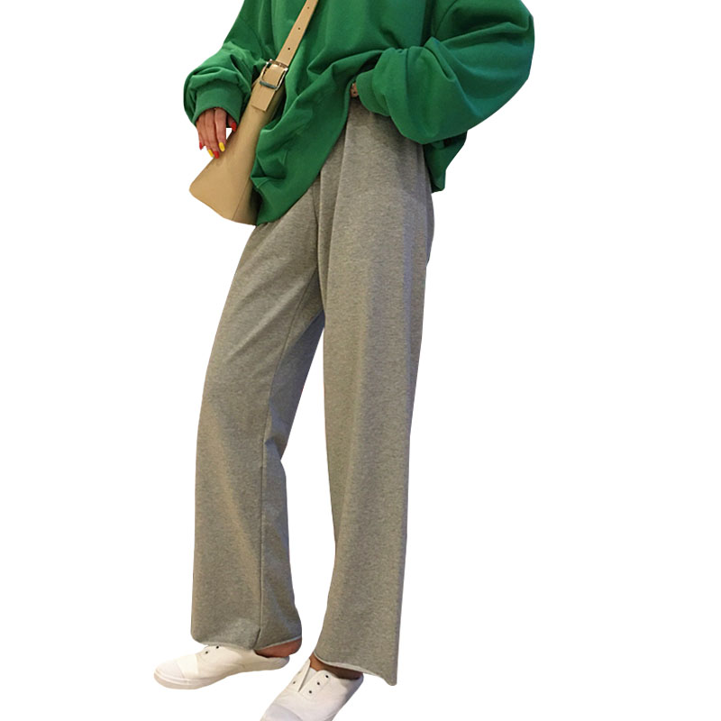 / 秋季女裝韓版寬松百搭抽繩休閑褲高腰顯瘦闊腿褲運動褲直筒褲長褲