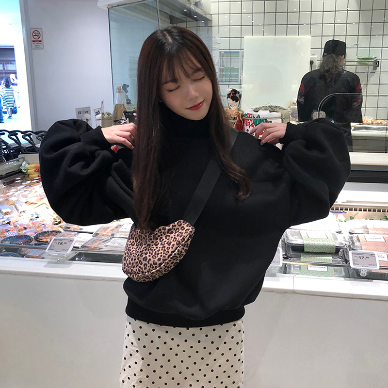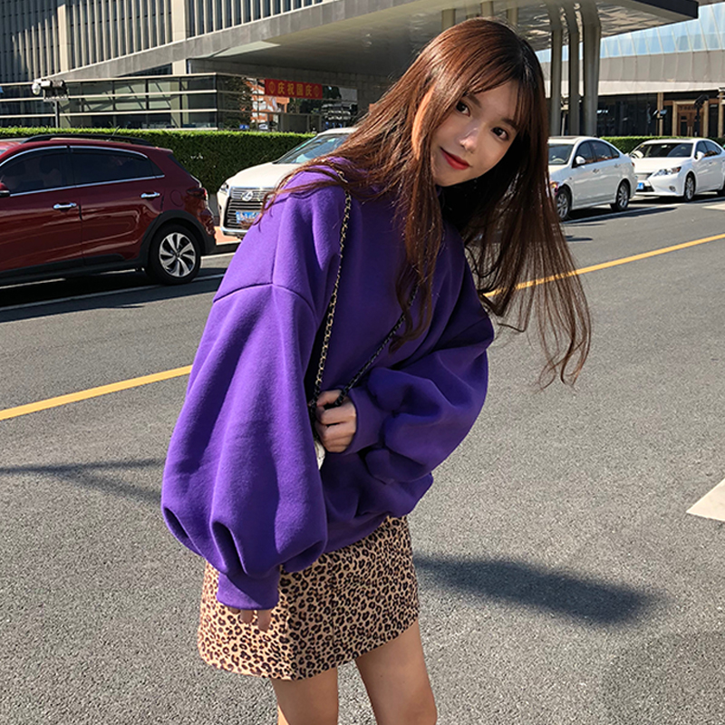 2018新款秋冬韓版寬松純色加絨加厚半高領套頭超火衛衣上衣外套女