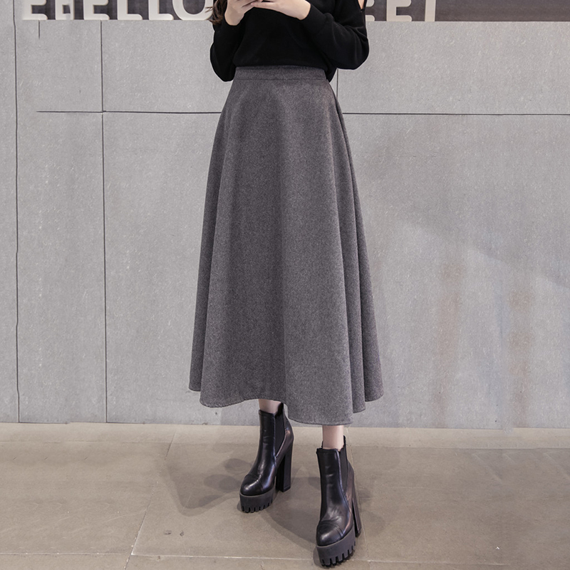 / 女裝秋冬毛呢長裙2018新款顯瘦高腰大擺a字裙女氣質黑色半身裙子