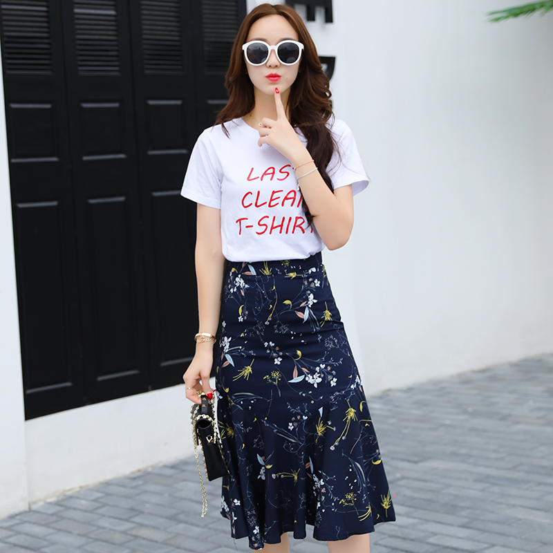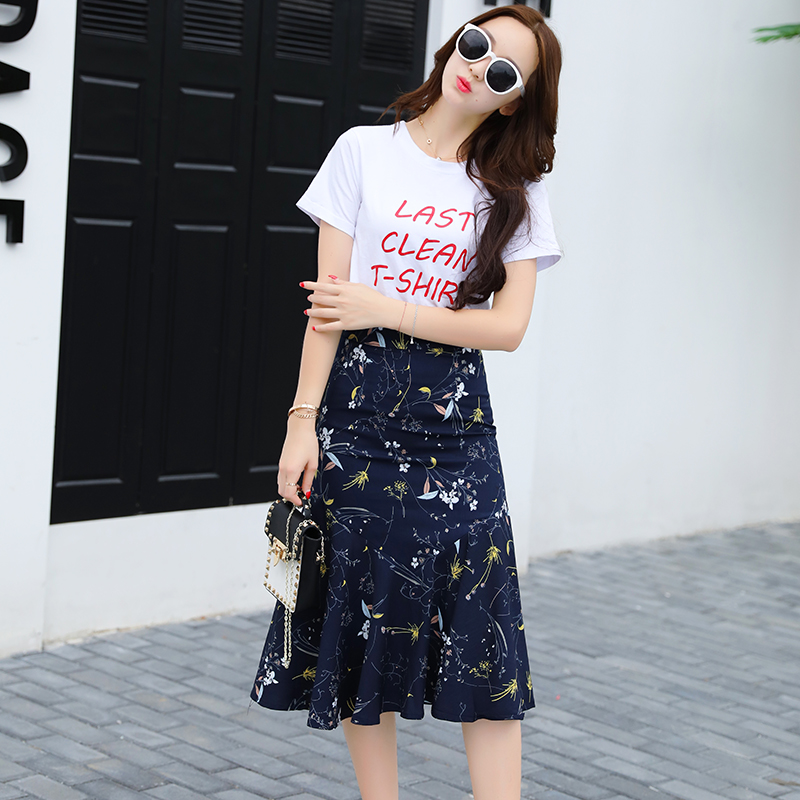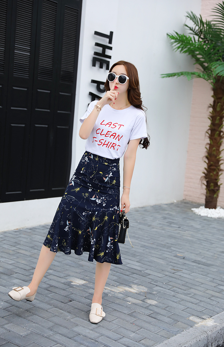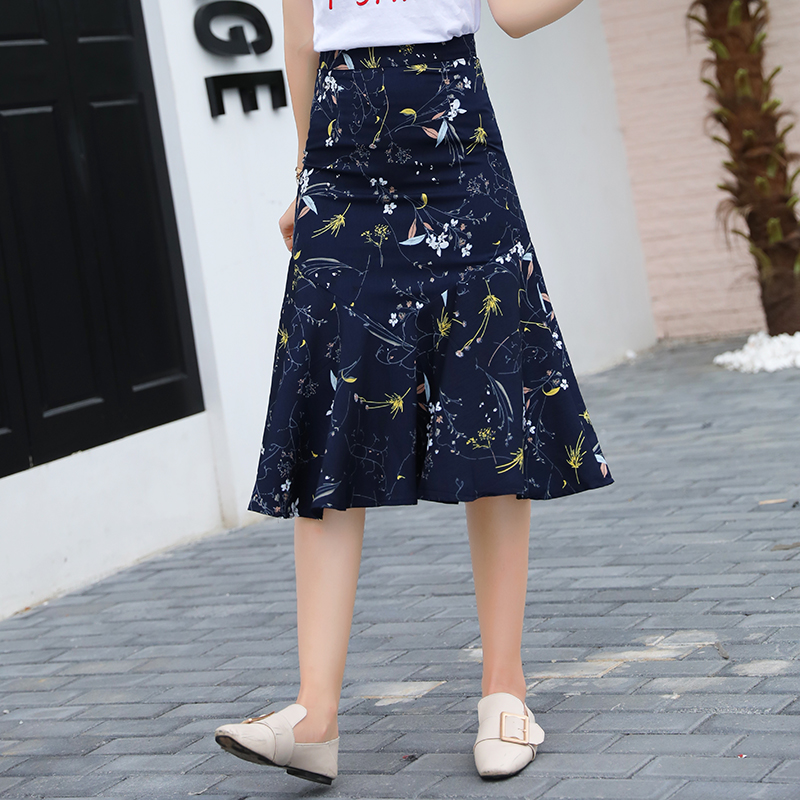 / 韓版高腰碎花半身裙女中長款荷葉邊包臀裙A字雪紡裙不規則長裙夏