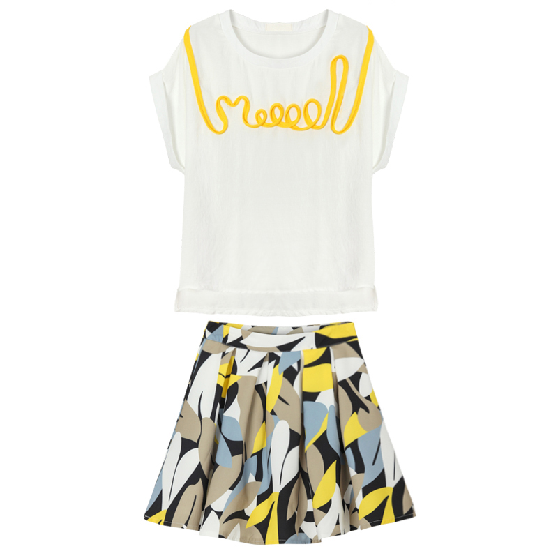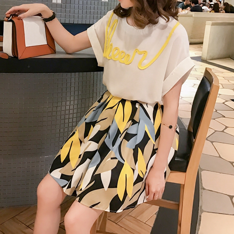 / 夏季新款套裝女裝時尚小香風寬松雪紡衫蓬蓬短裙兩件套連衣裙