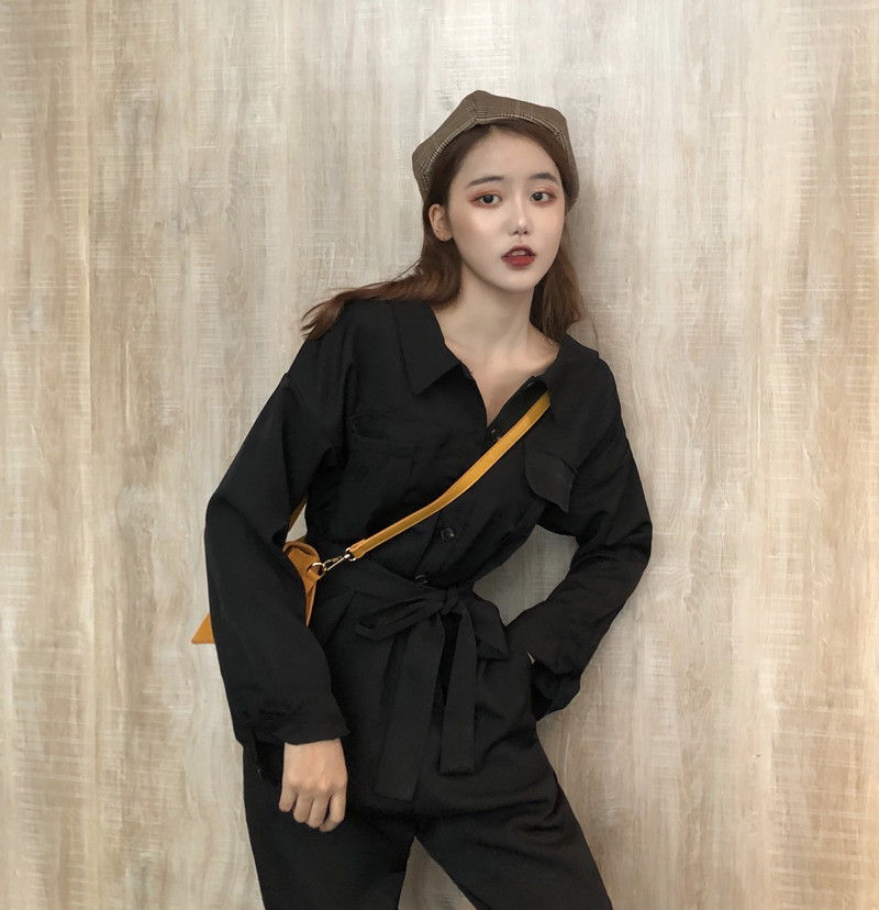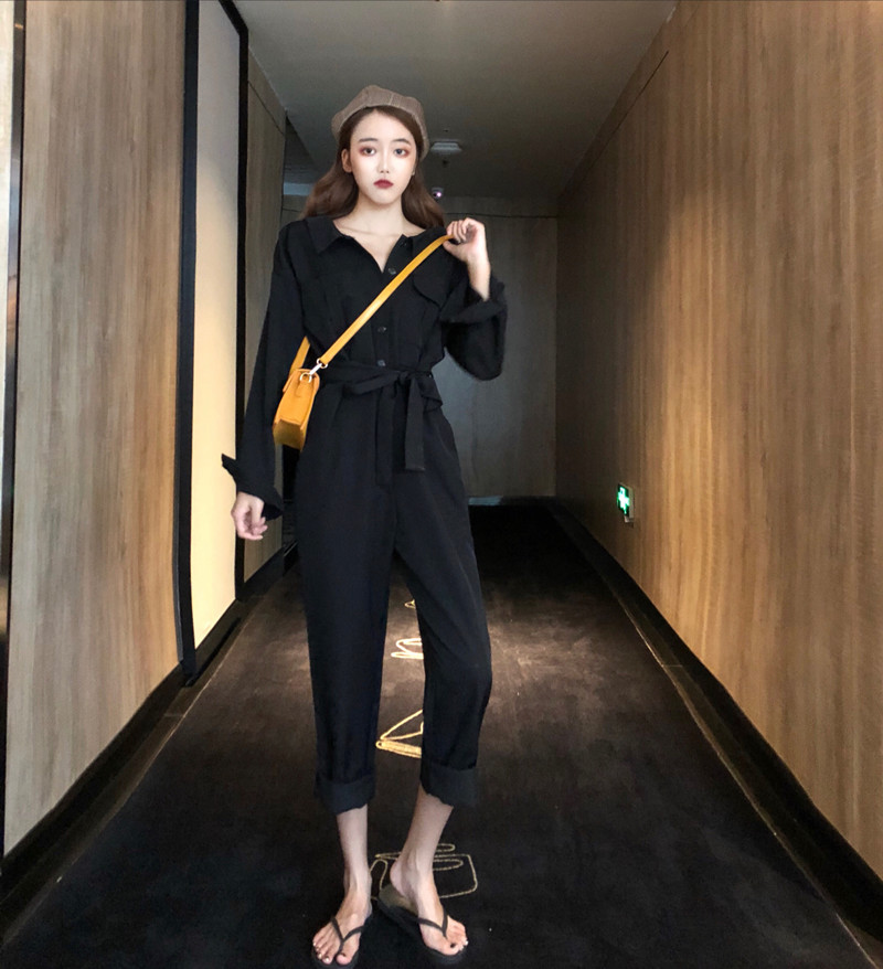 新款純色多穿法露肩翻領OL西裝小清新時尚百搭復古chic連體褲女潮