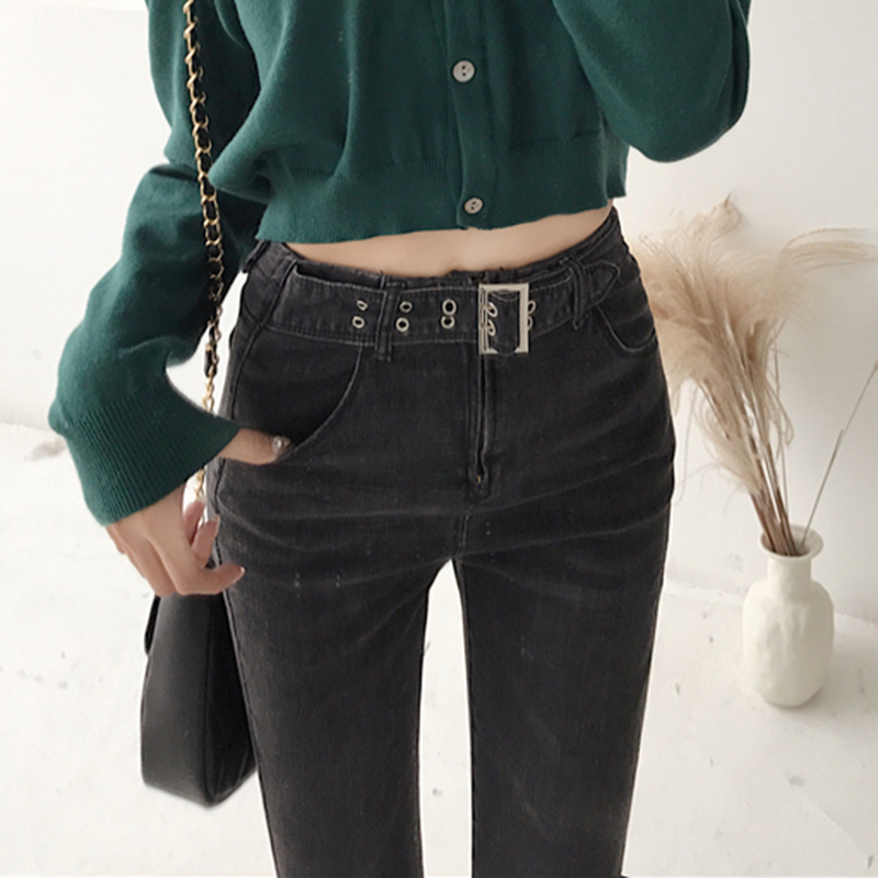 / 復古風高腰顯瘦緊身牛仔褲女秋冬裝新款學生黑色彈力九分鉛筆褲子
