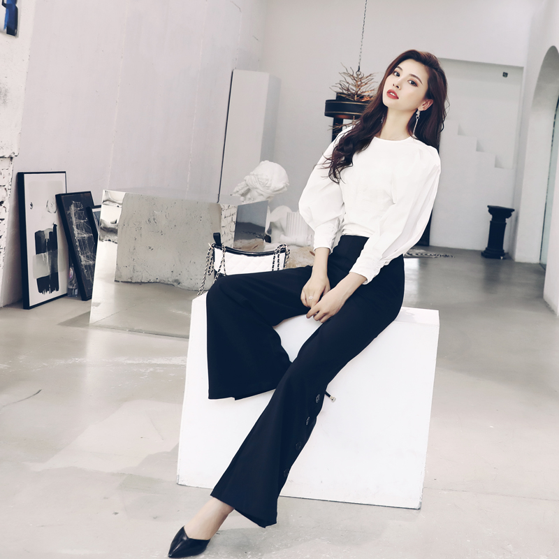 / 秋裝垂感針織闊腿褲2018新款女神休閑套裝女夏時尚長袖上衣兩件套