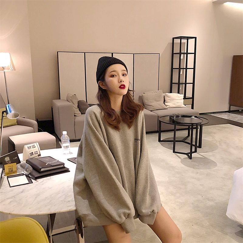 / 新款韓版時尚寬松顯瘦圓領長袖字母套頭加絨加厚衛衣百搭學生上衣