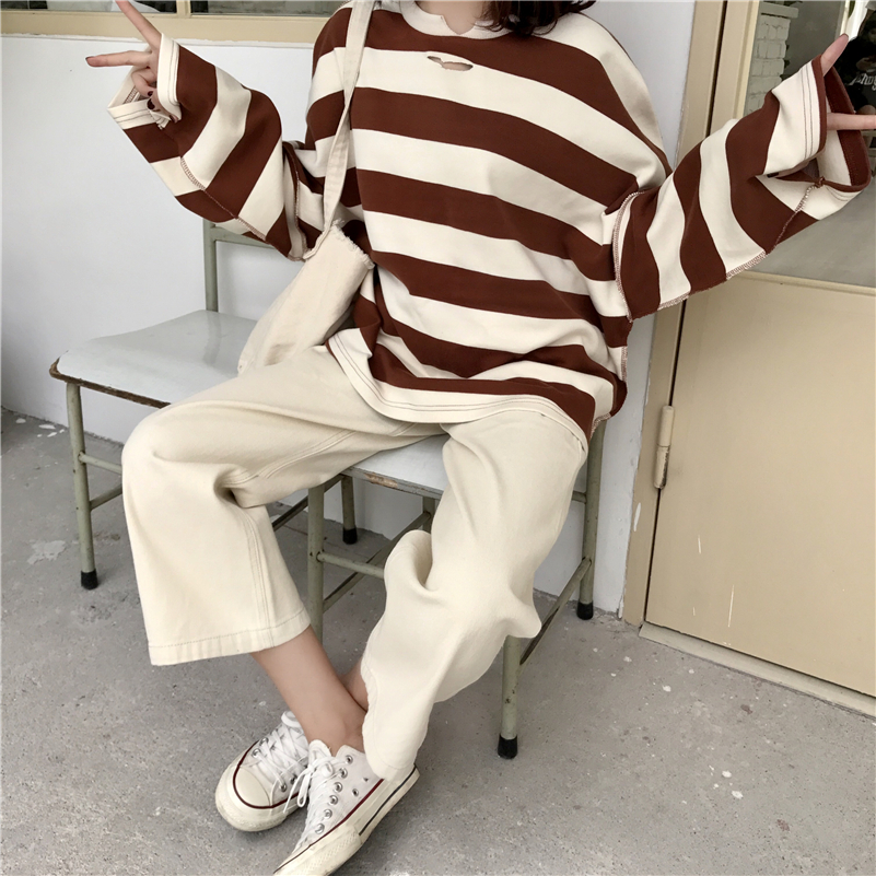 / 秋裝女裝新款韓版高腰寬松闊腿褲百搭顯瘦牛仔褲九分褲長褲學生潮