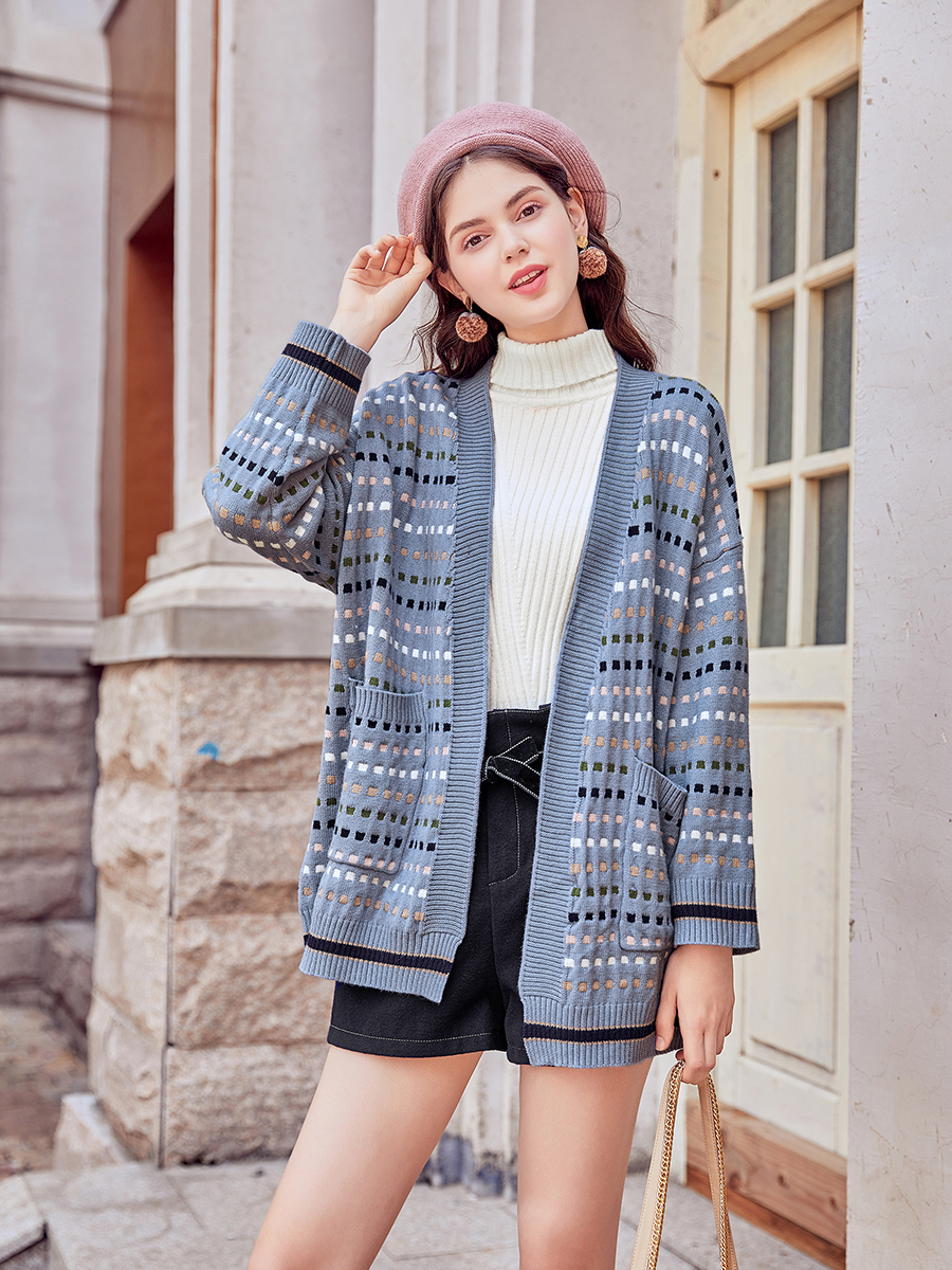 MG小象休閑毛衣女秋冬2018新款寬松開衫針織外套學生小清新上衣潮