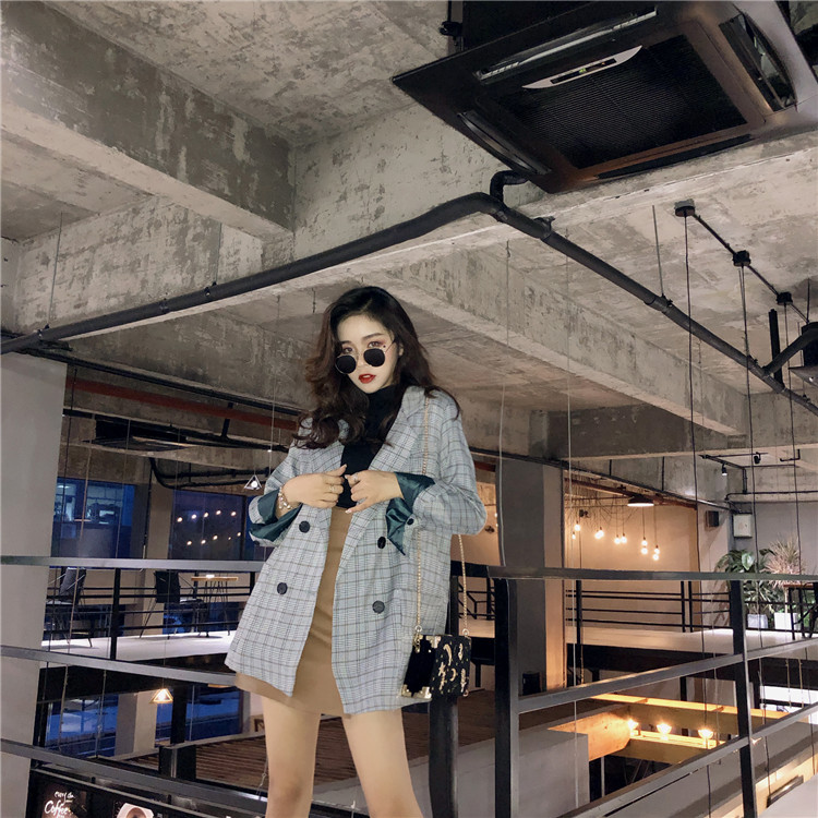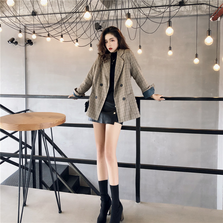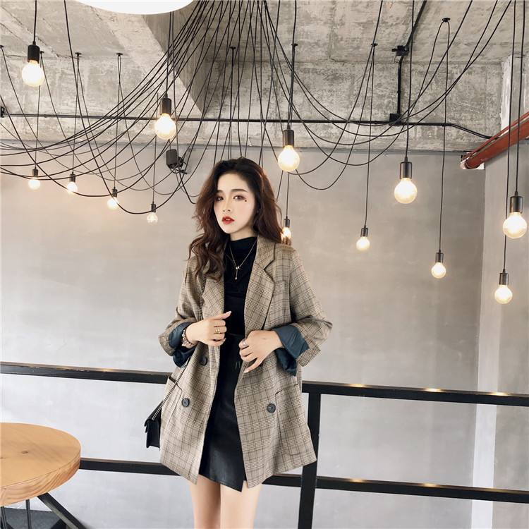 / 時尚秋裝女2018新款百搭復古寬松秋季港風格子拼色韓國西裝小外套
