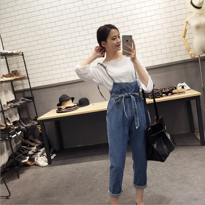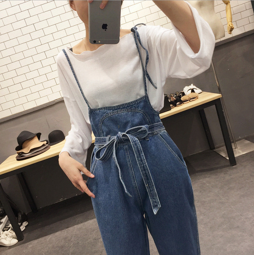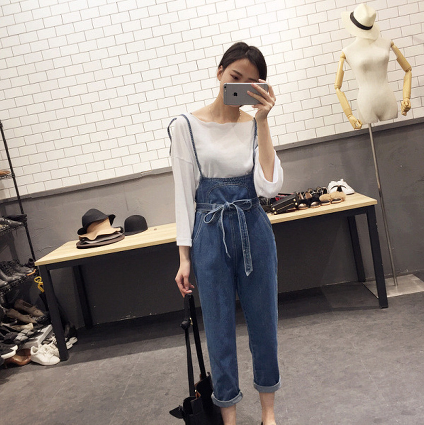 / 褲子女秋2018新款學院風牛仔背帶褲高腰闊腿長褲 可愛 修身顯瘦