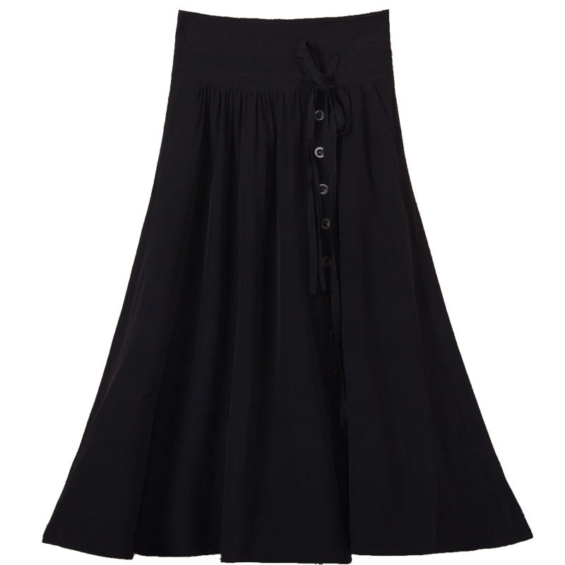 年夏裝新款純色系帶A字半身裙大裙擺 韓版薄款百褶松緊腰長裙