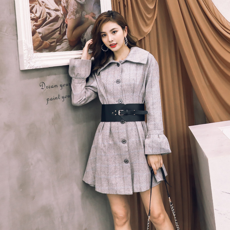 / 連衣裙復古chic早秋裝女2018新款中長款收腰格子中長款網紅裙子潮