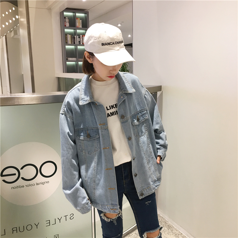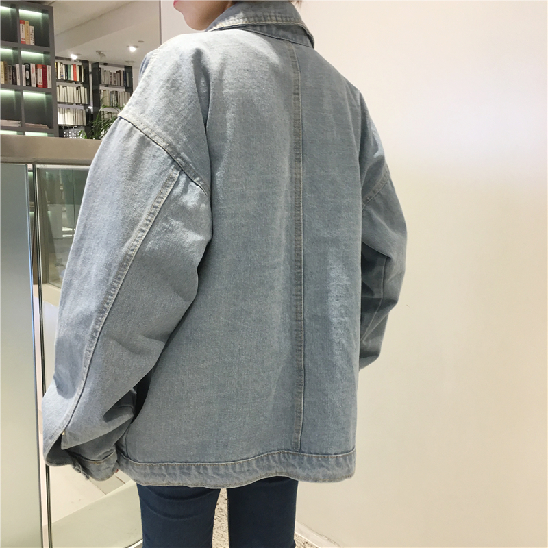 秋裝女裝韓版復古寬松百搭工裝牛仔夾克短款外套做舊休閑上衣學生