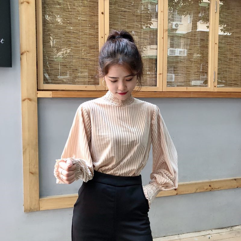 2018新款秋季女裝韓版半高領純色修身顯瘦長袖打底衫T恤上衣學生