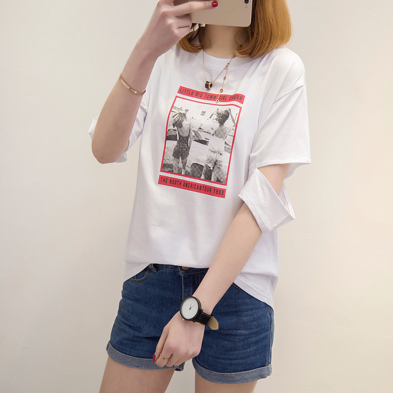 短袖T恤女寬松韓版印花學生上衣半袖打底體恤女裝夏裝新款潮