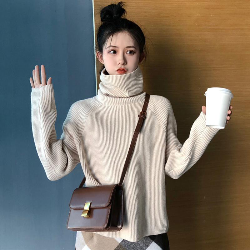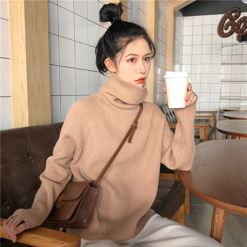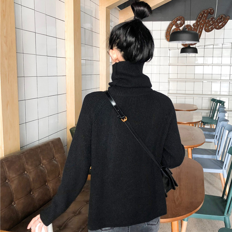 chic慵懶風高領毛衣外套女秋冬裝2018新款韓版下擺開叉長袖針織衫
